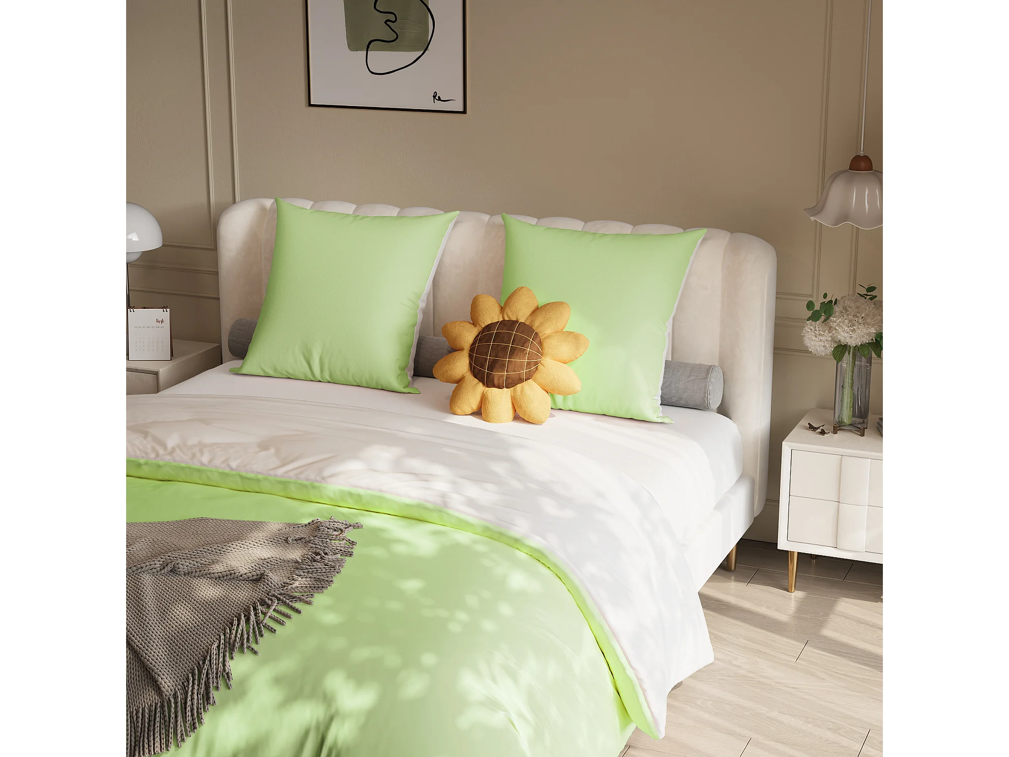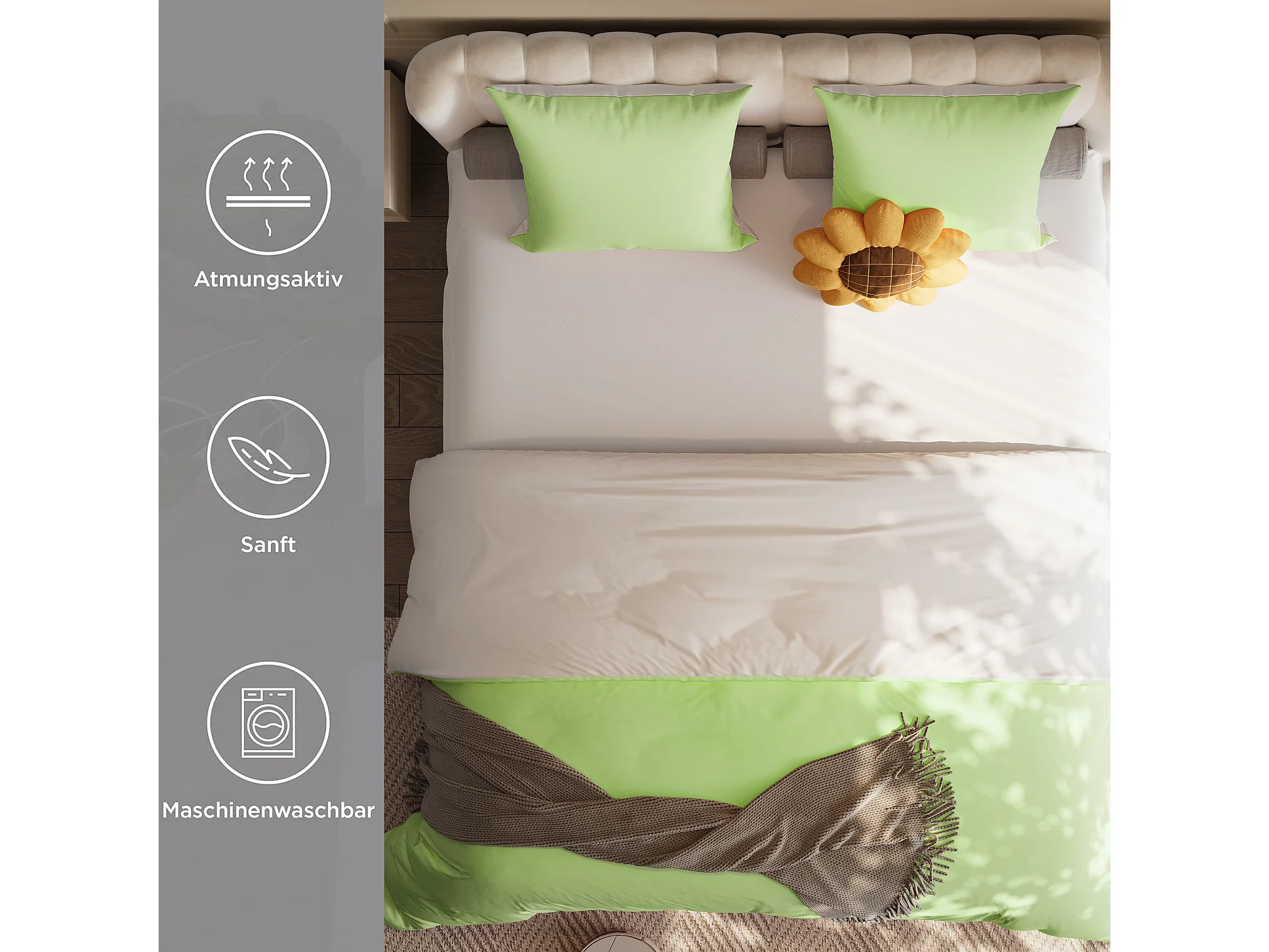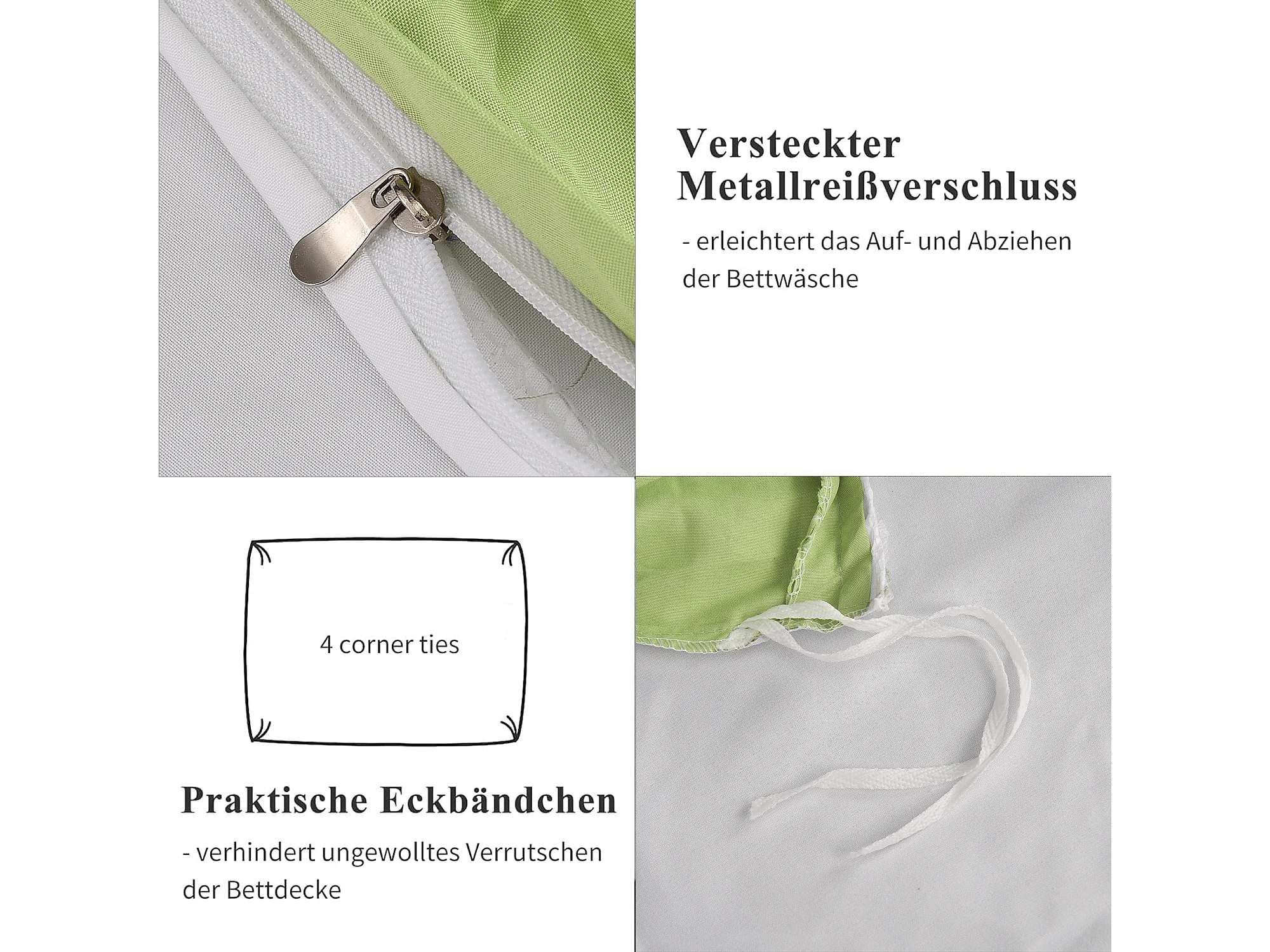 ensemble de literie 4 pièces,drap-housse 140x200x30 cm, housse de couette avec corde d'angle,2 taies d'oreiller,blanc vert