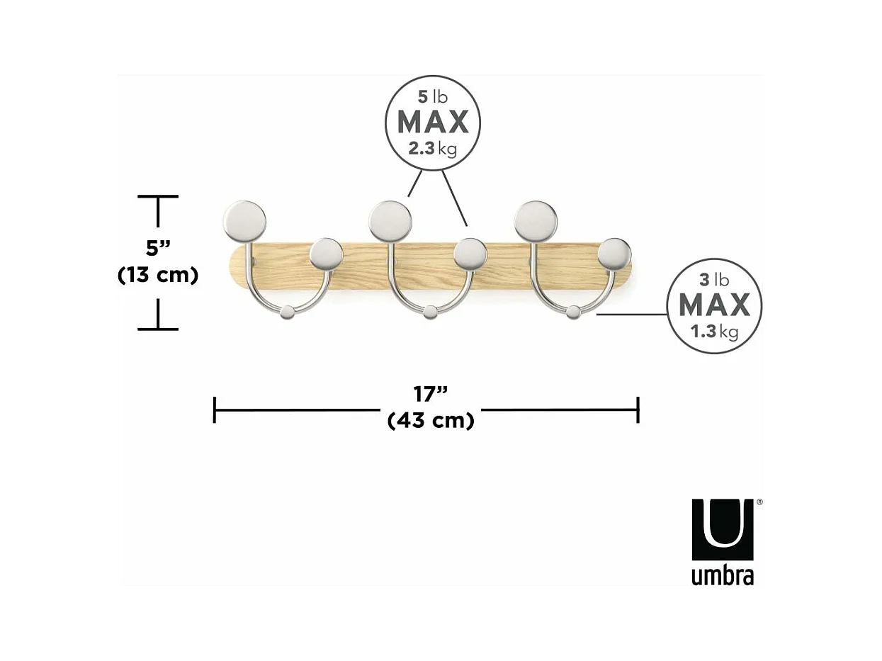 Patère en Bois 6 crochets en Céramique L 66 cm