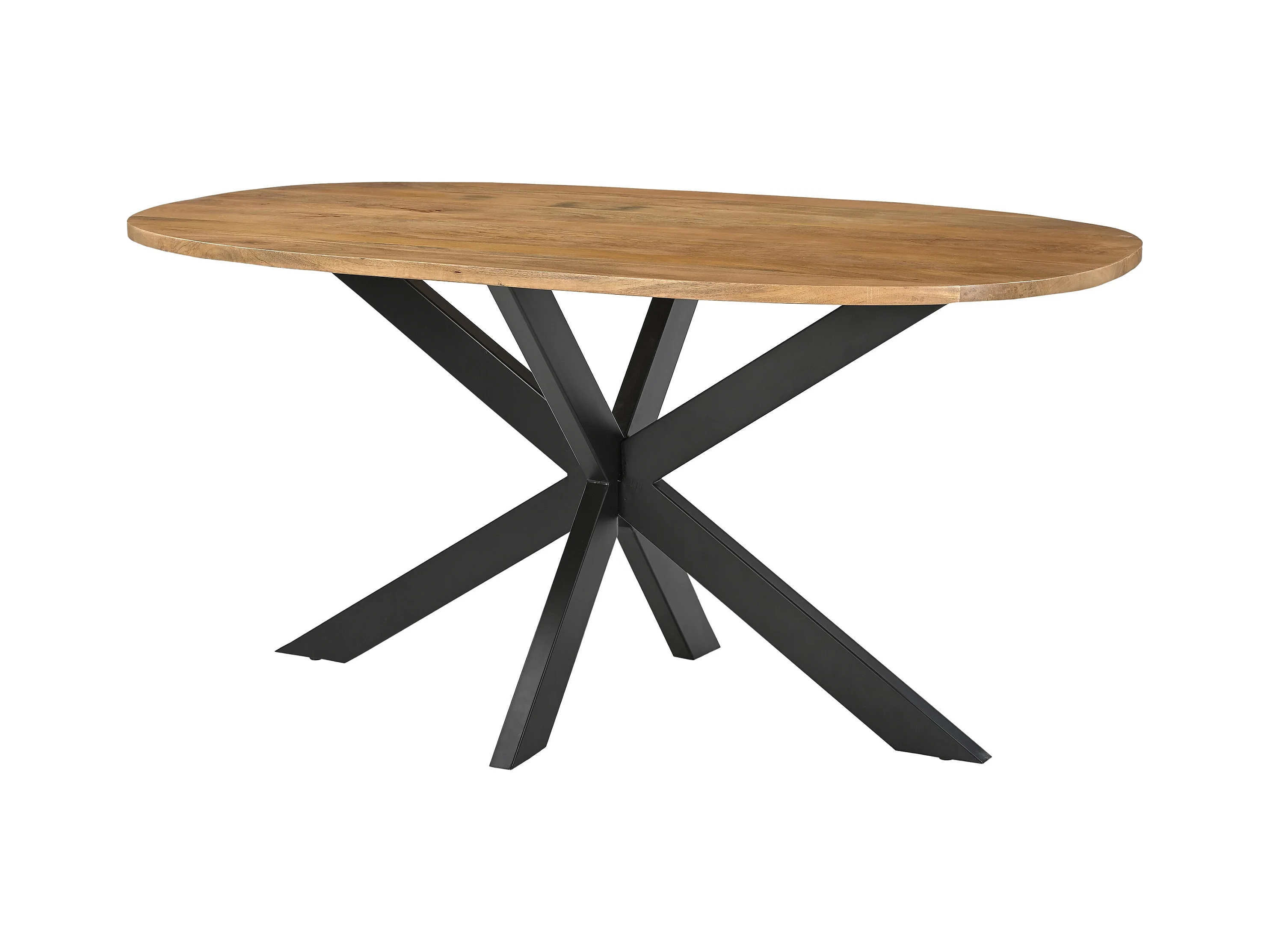 Table à manger 6 personnes en bois de manguier et métal noir - Naturel clair - PATRICIA