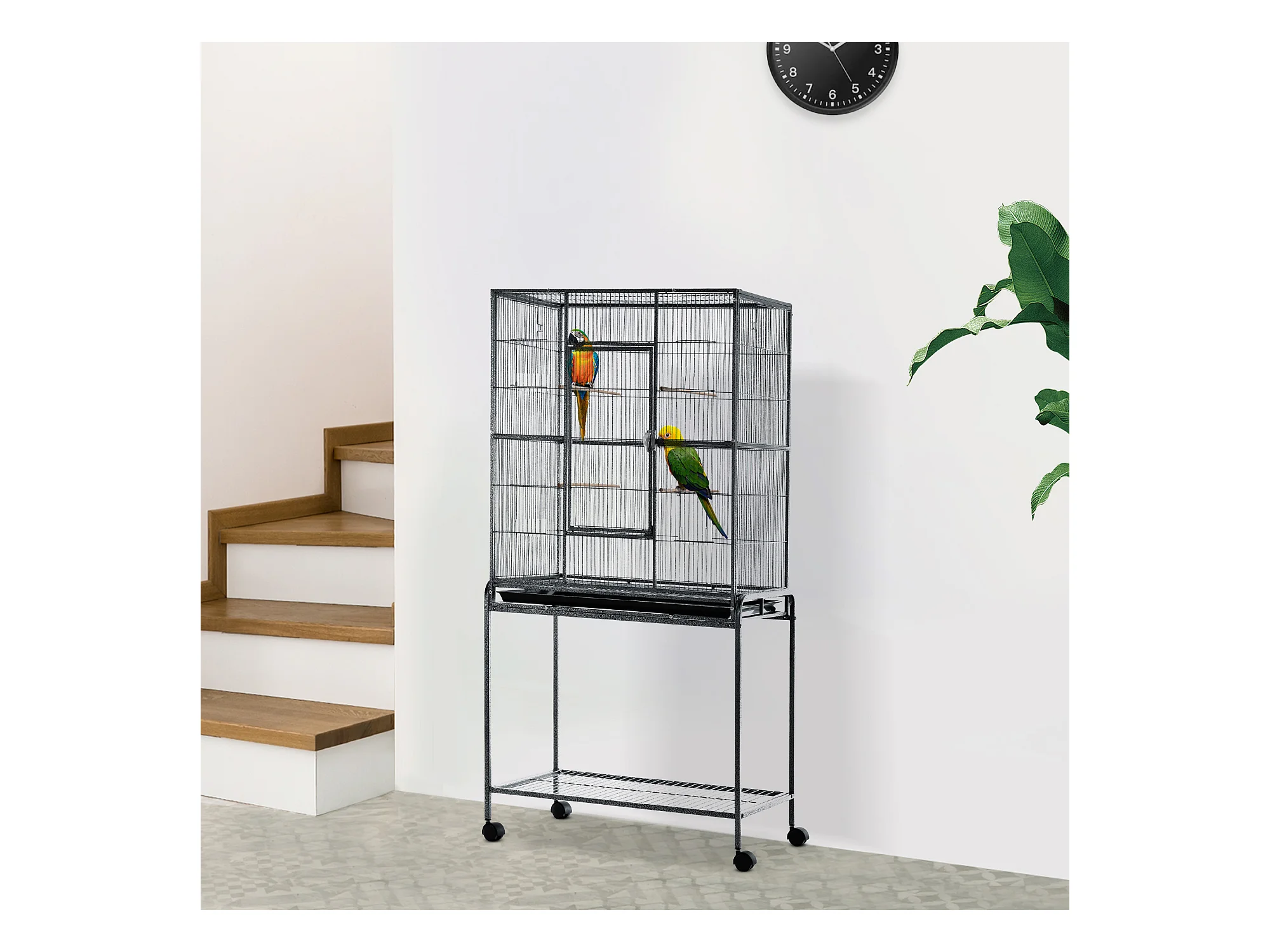 PawHut Cage à Oiseaux Portable avec 4 Mangeoires et 4 Perchoirs Pratique 81 x 48 x 163 cm Noir et Gris