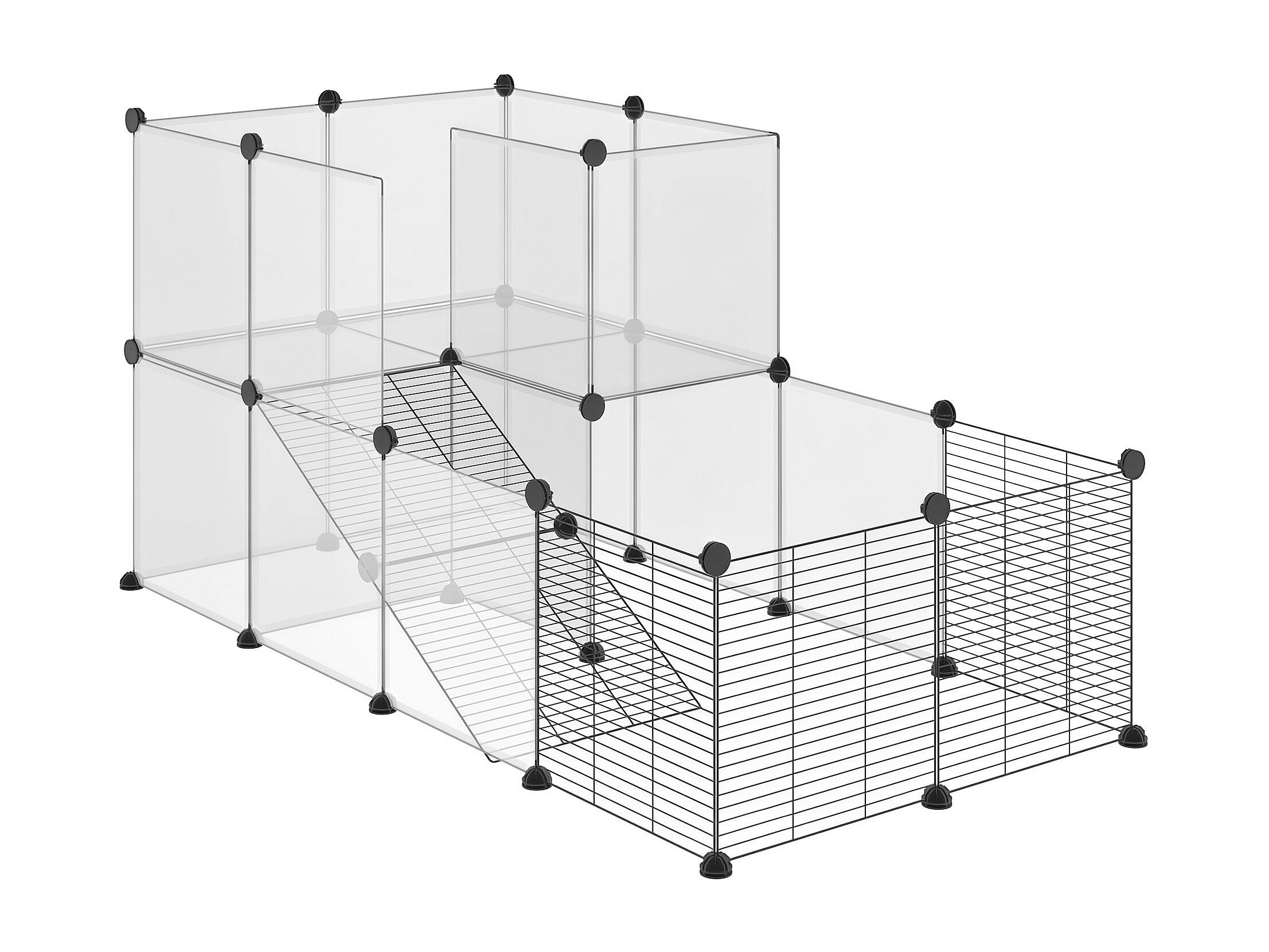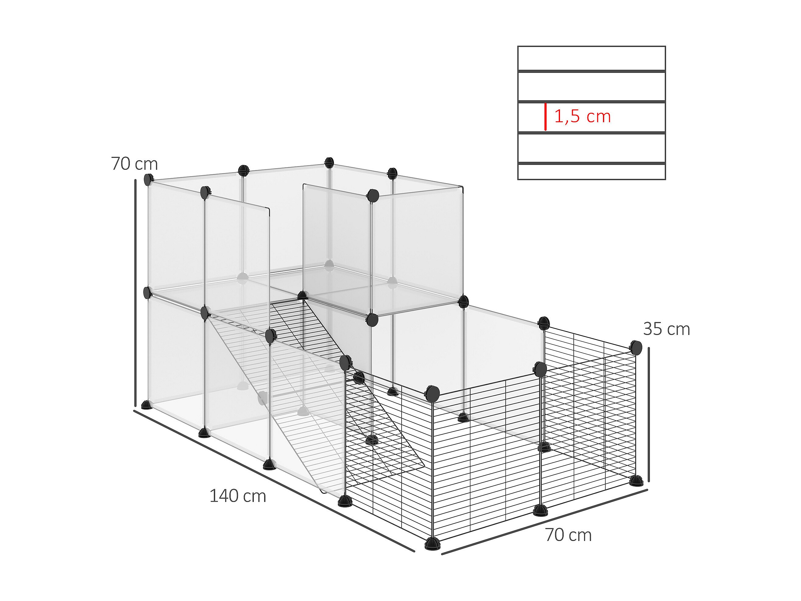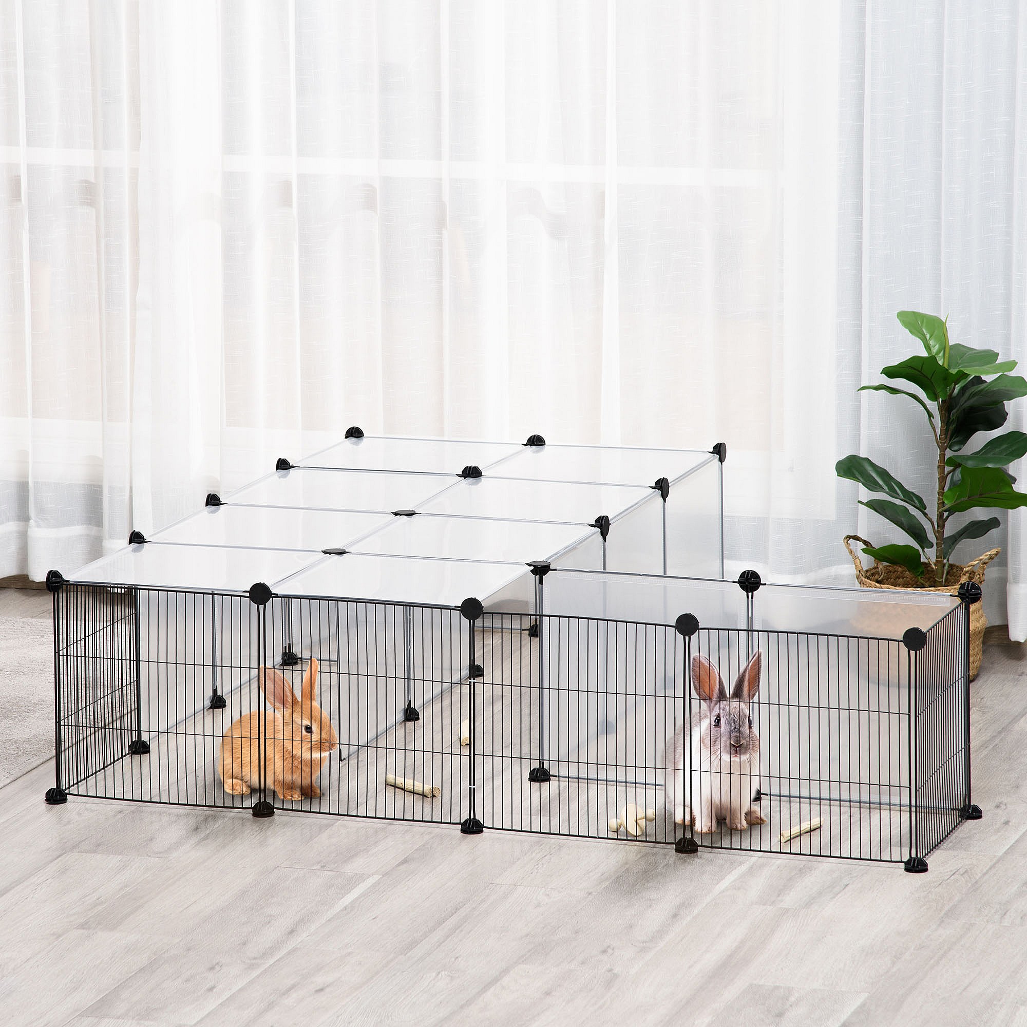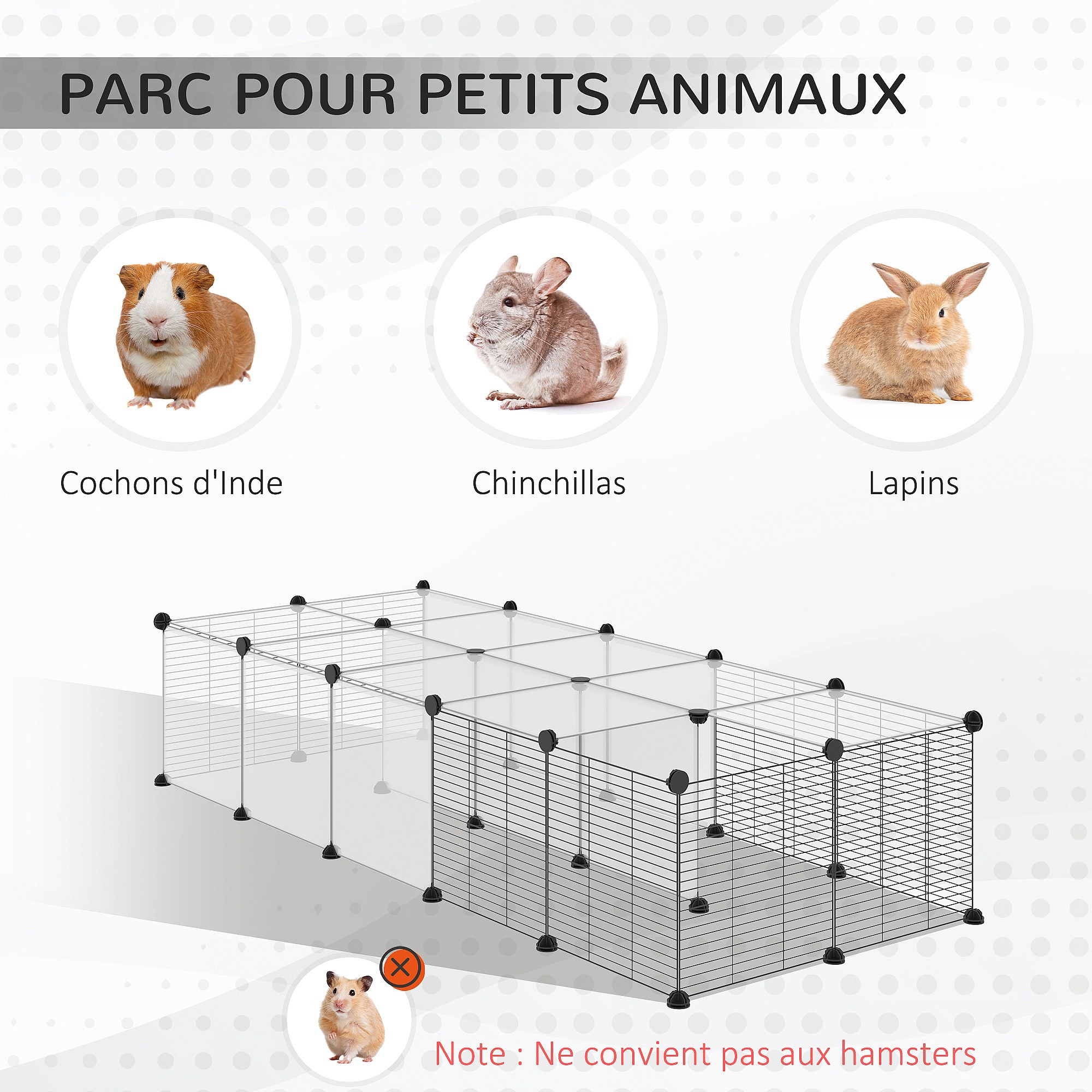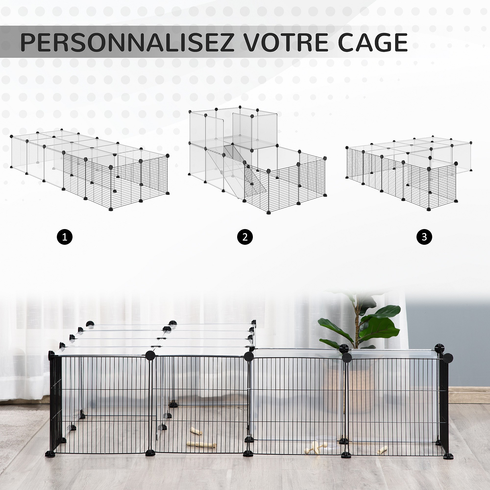 PawHut Cage parc enclos modulable petits animaux de compagnie - dim. standards 140L x 70l x 70H cm - 27 panneaux bords arrondis - résine PP fils d'acier noir