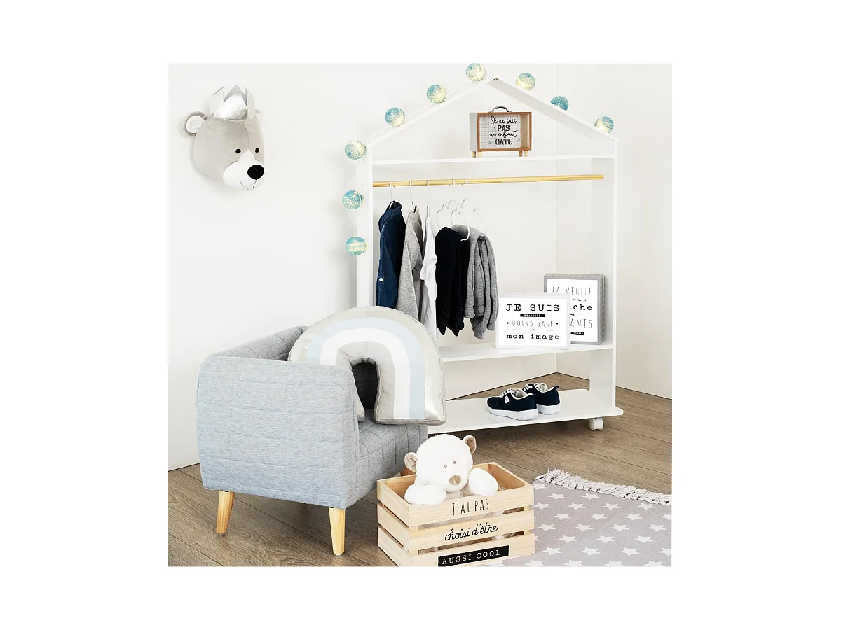 Penderie à Roulettes Enfant "Brad" 120cm Blanc