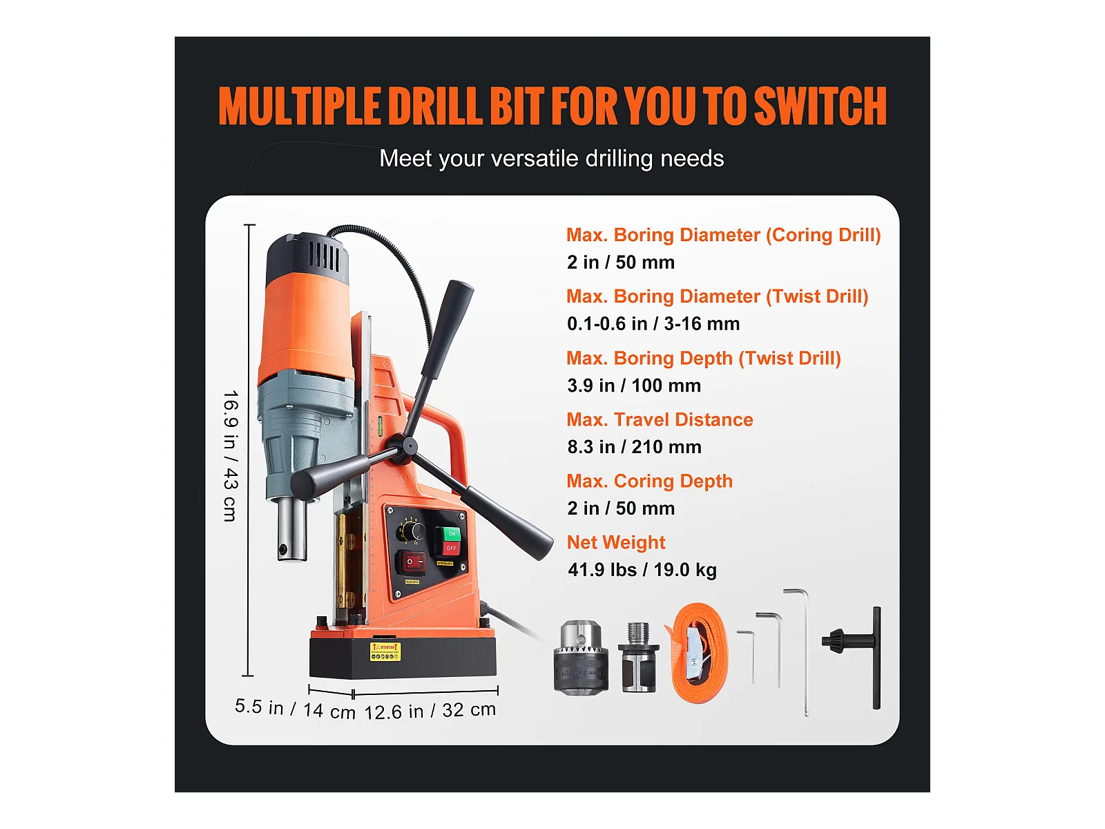 Perceuse Magnétique SucceBuy 1550 W, 2922 lbf, Perceuse Magnétique Portative à 500 tr/min