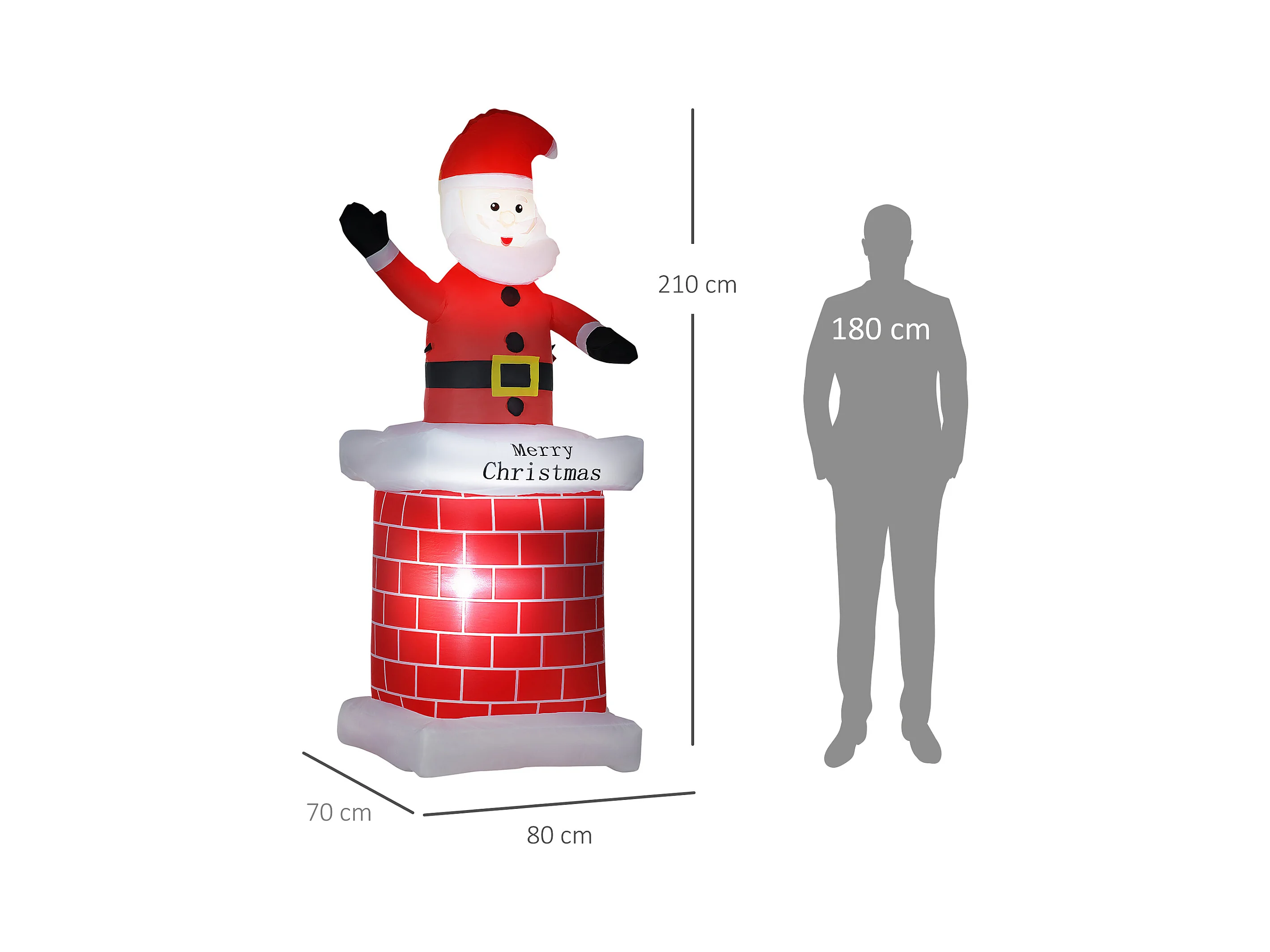 Père Noël gonflable avec cheminée lumineux LED hauteur 210 cm polyester imperméable rouge blanc noir