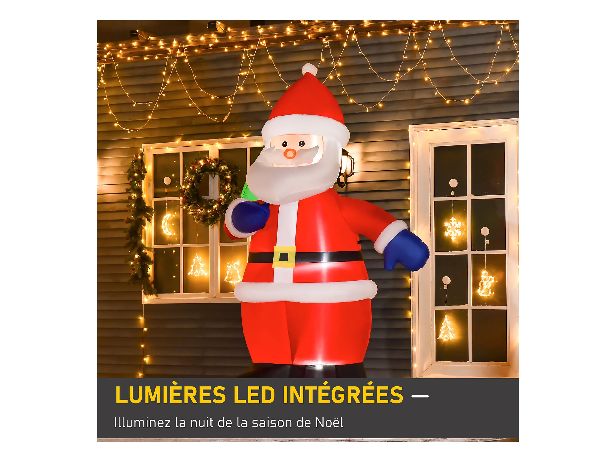 Père Noël gonflable LED 2,4H m avec hotte polyester imperméable rouge