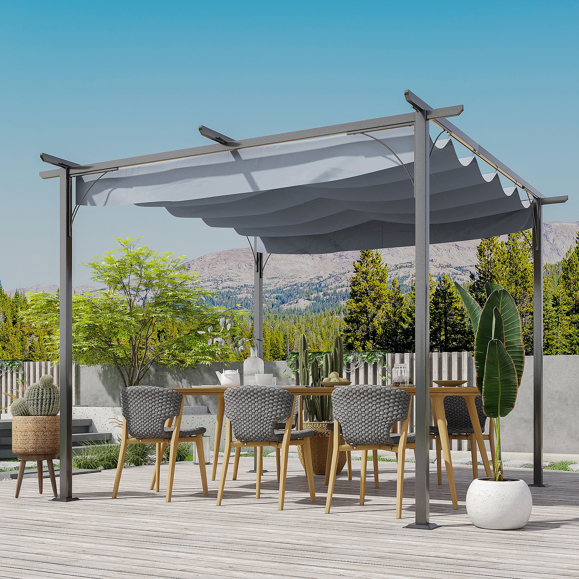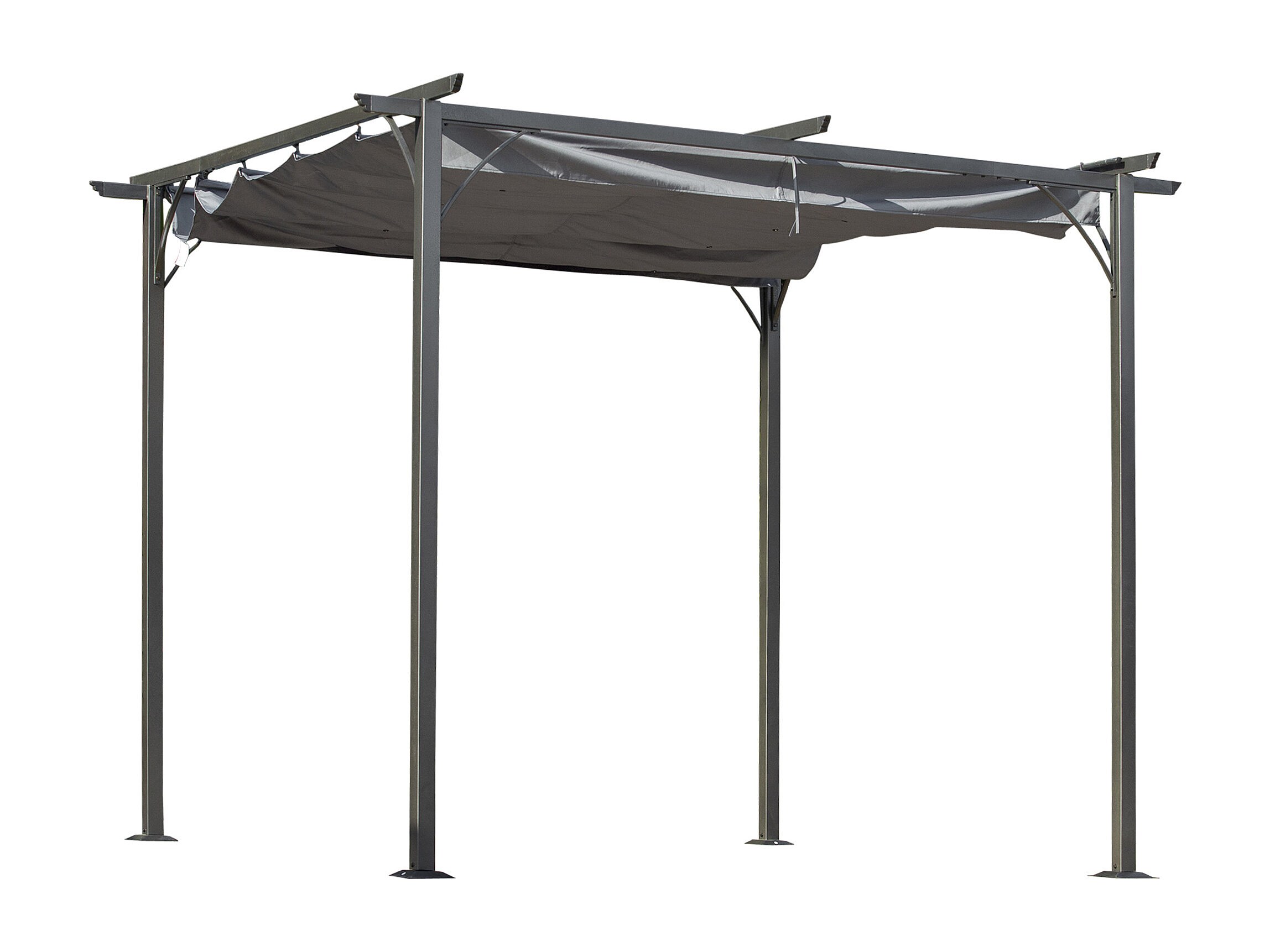 Pergola rétractable 3L x 3l x 2,30H m structure métal époxy anticorrosion noire + toile polyester haute densité 180 g/m² incluse gris
