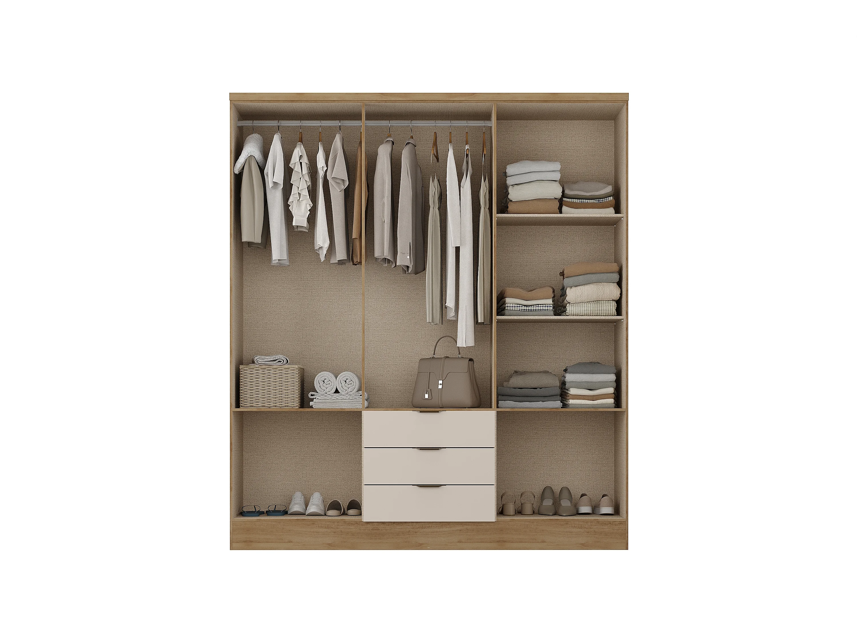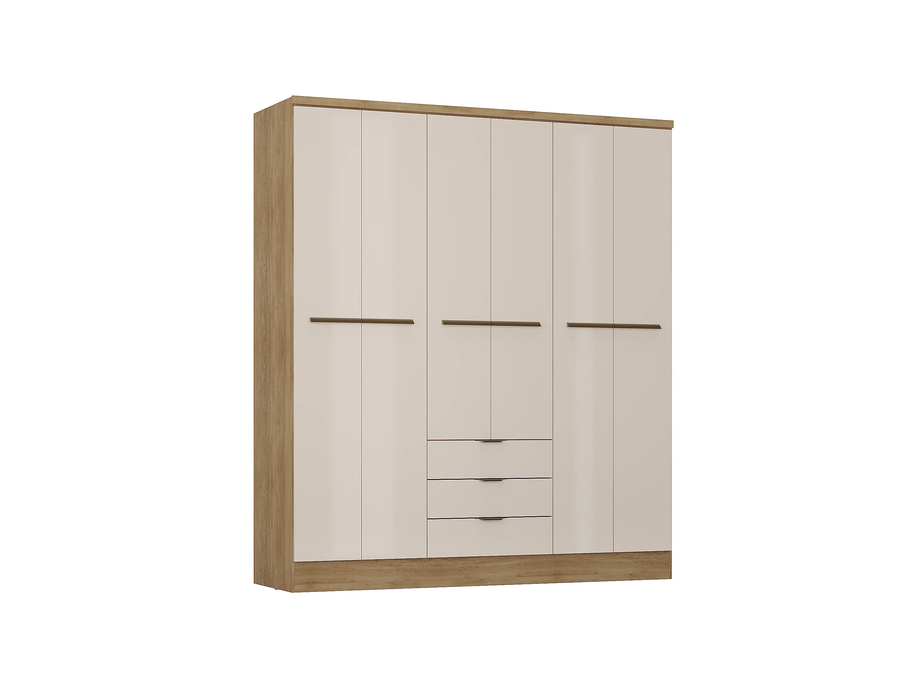 Armoire 6 portes et 3 tiroirs - L180 cm - Coloris : Beige et naturel - PEROLI