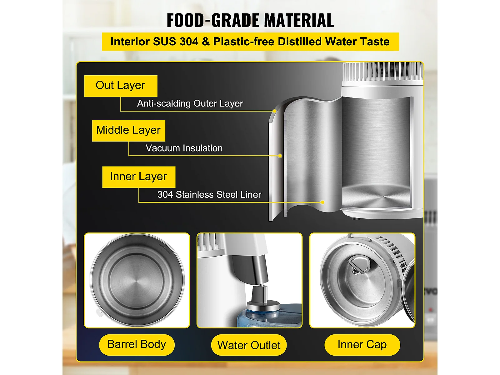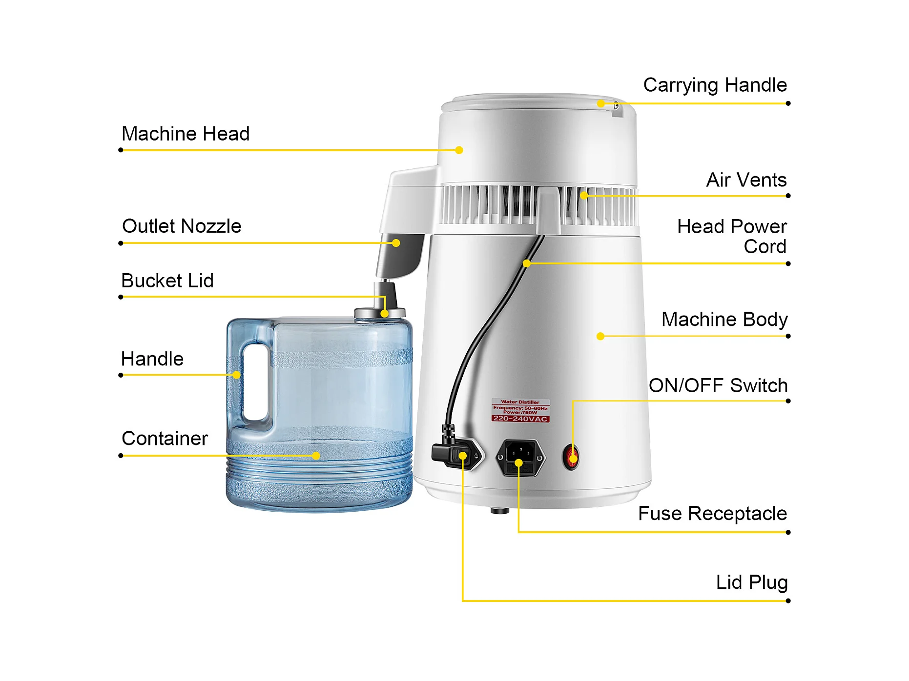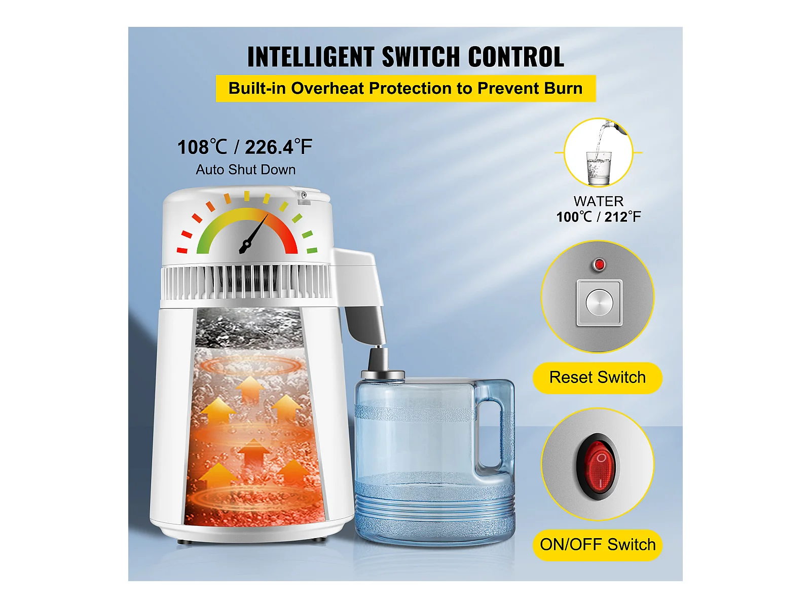 Petit Electroménager SucceBuy Distillateur D'Eau Pure 4 L, Filtre Purificateur D'Eau 1 L/H, Maison Médicale Dentaire, 220 V