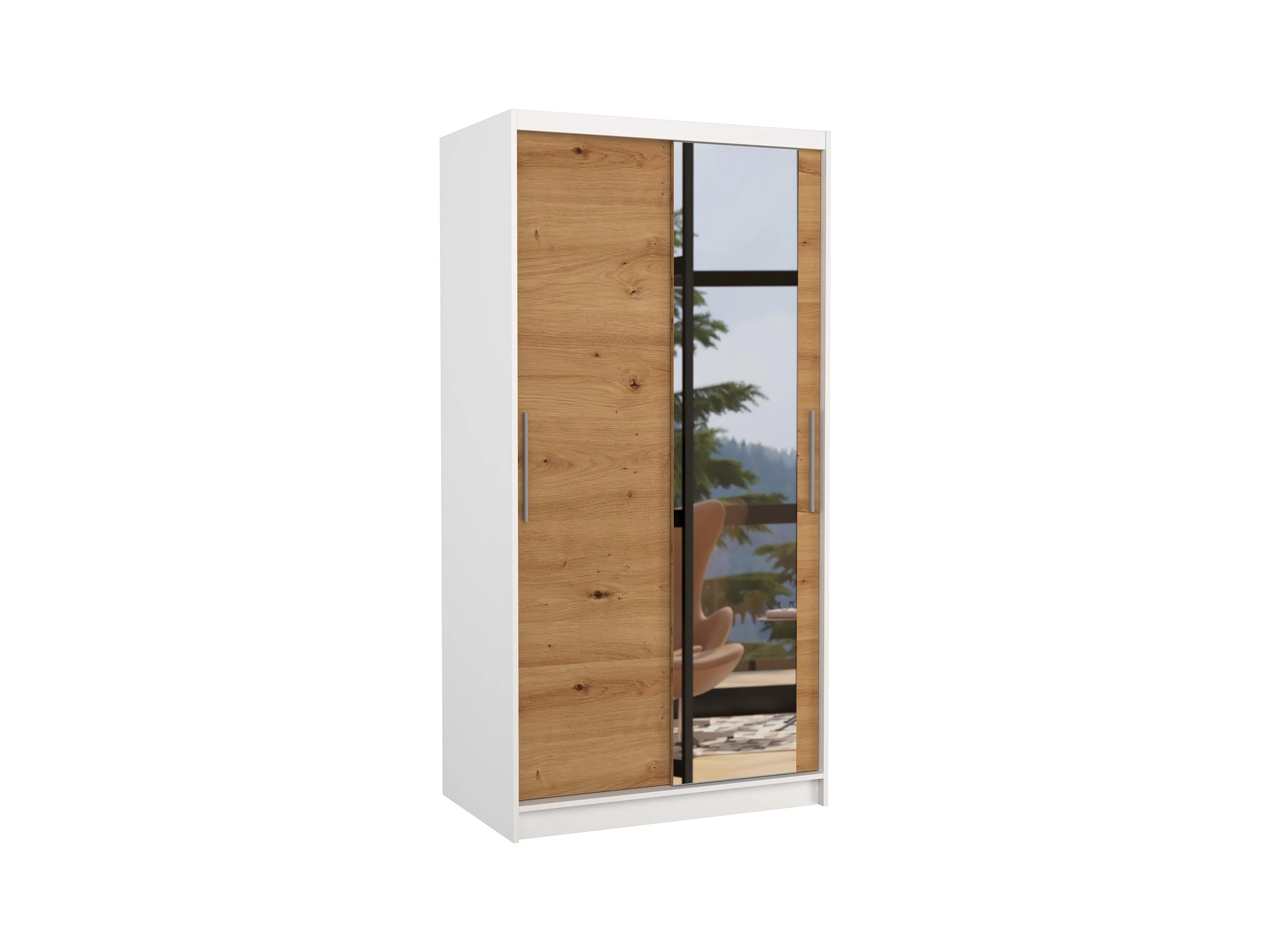 Petite armoire de chambre blanche 2 portes coulissantes bois naturel et miroir Bazo 100cm
