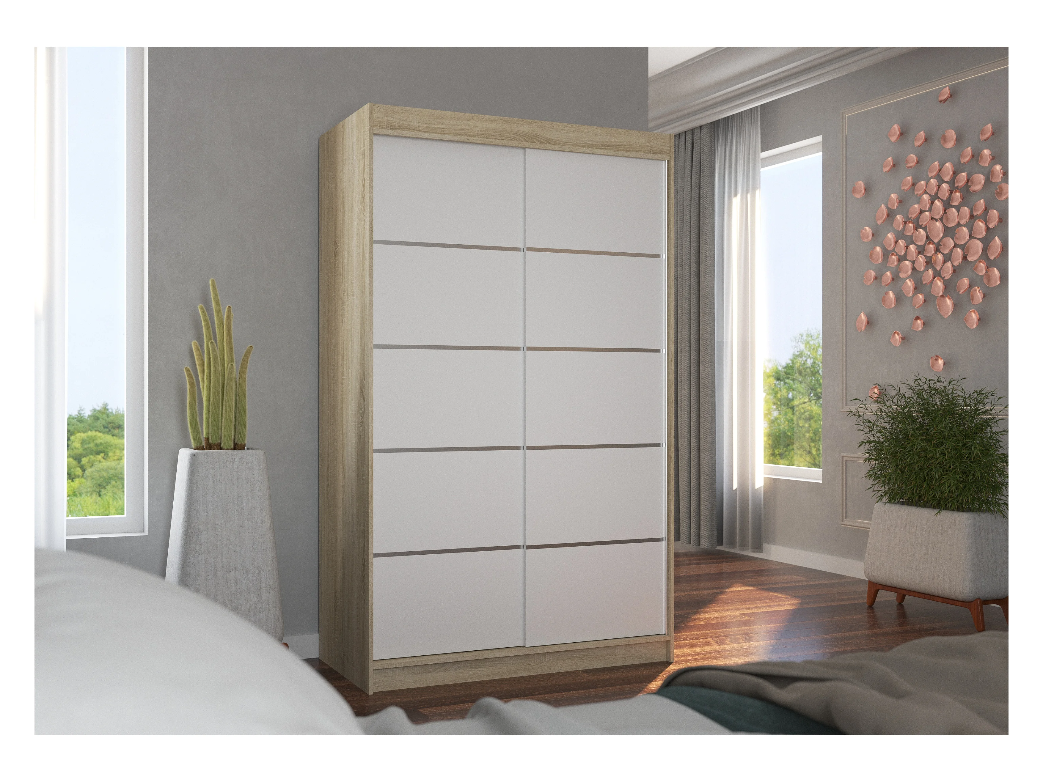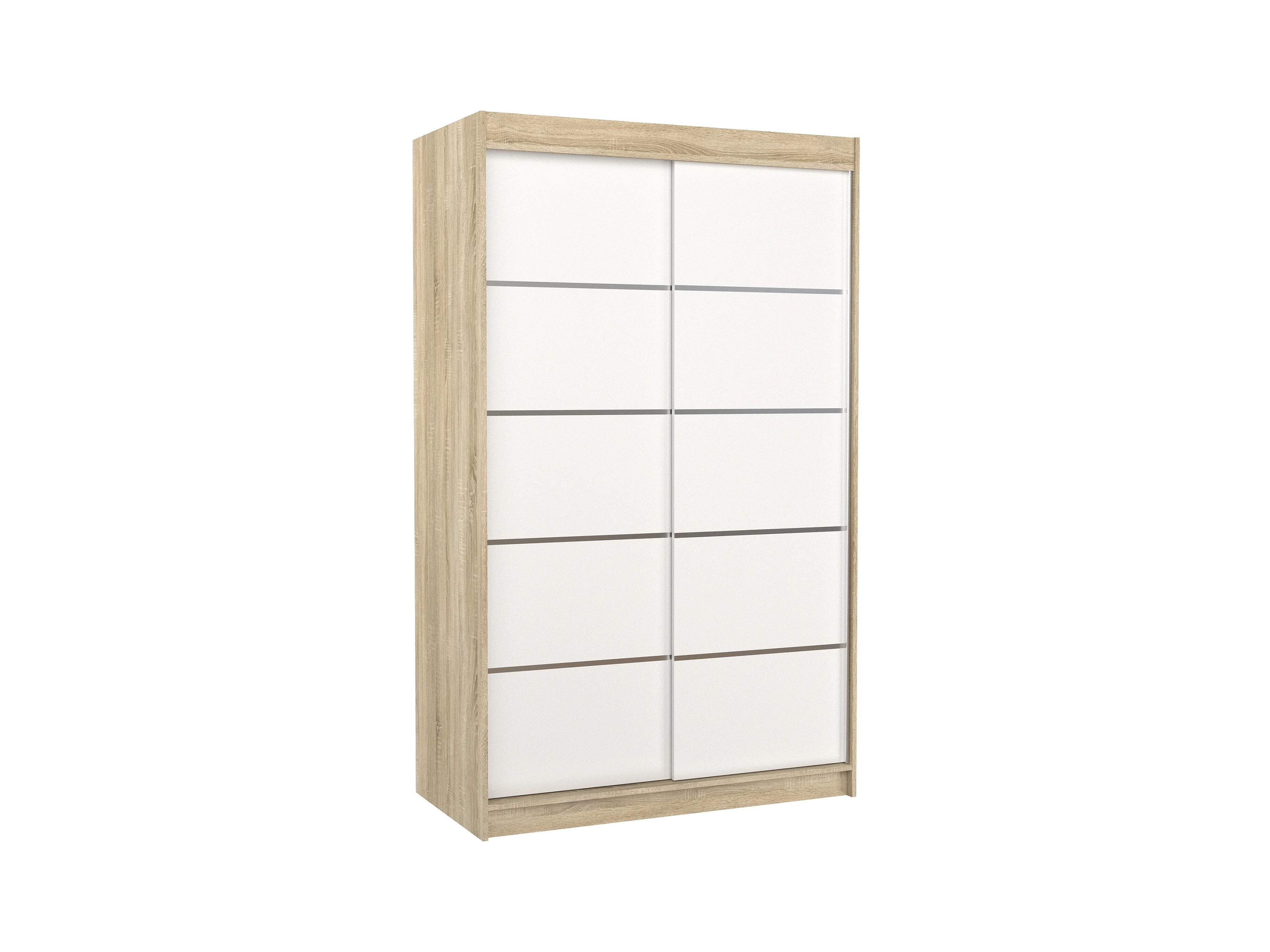 Petite armoire de chambre naturel et blanc avec 2 portes coulissantes Benko 120cm