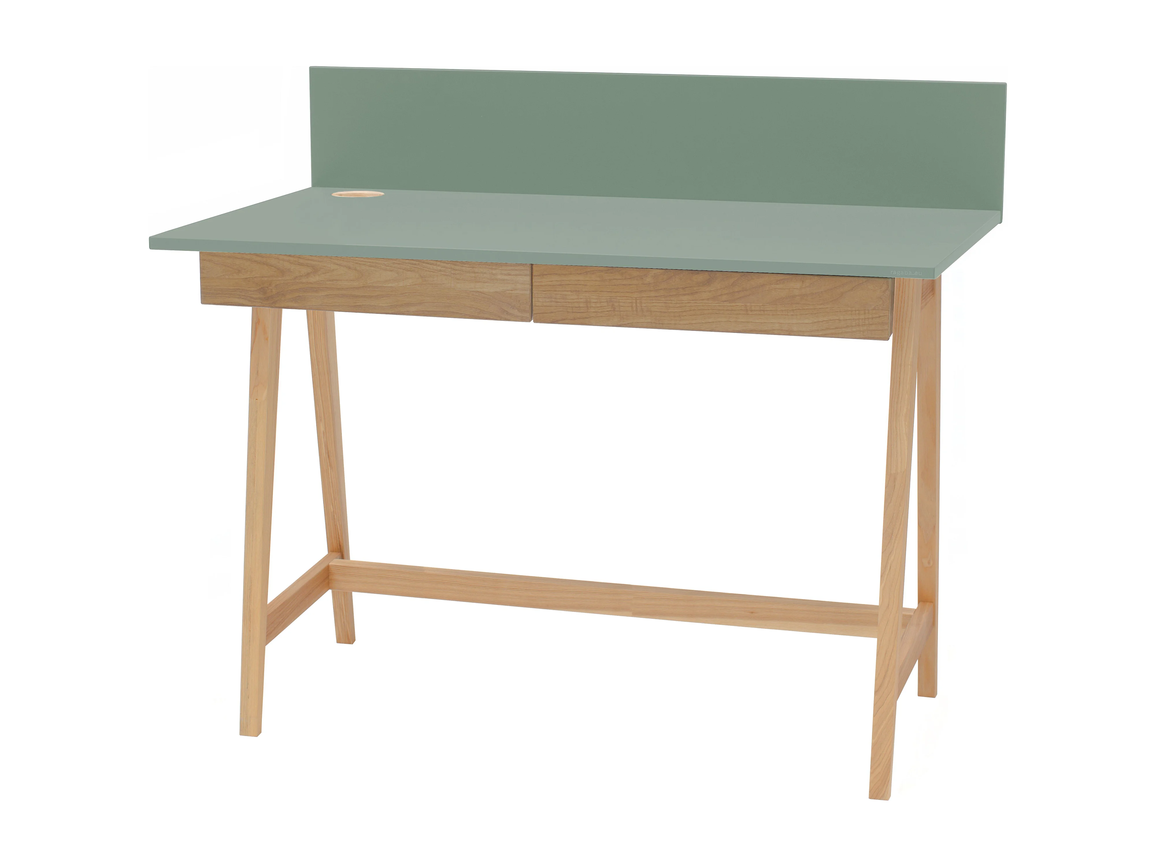 Petite bureau avec tiroirs 110 x 50 cm Luka Vert Sauge | Pieds en frêne