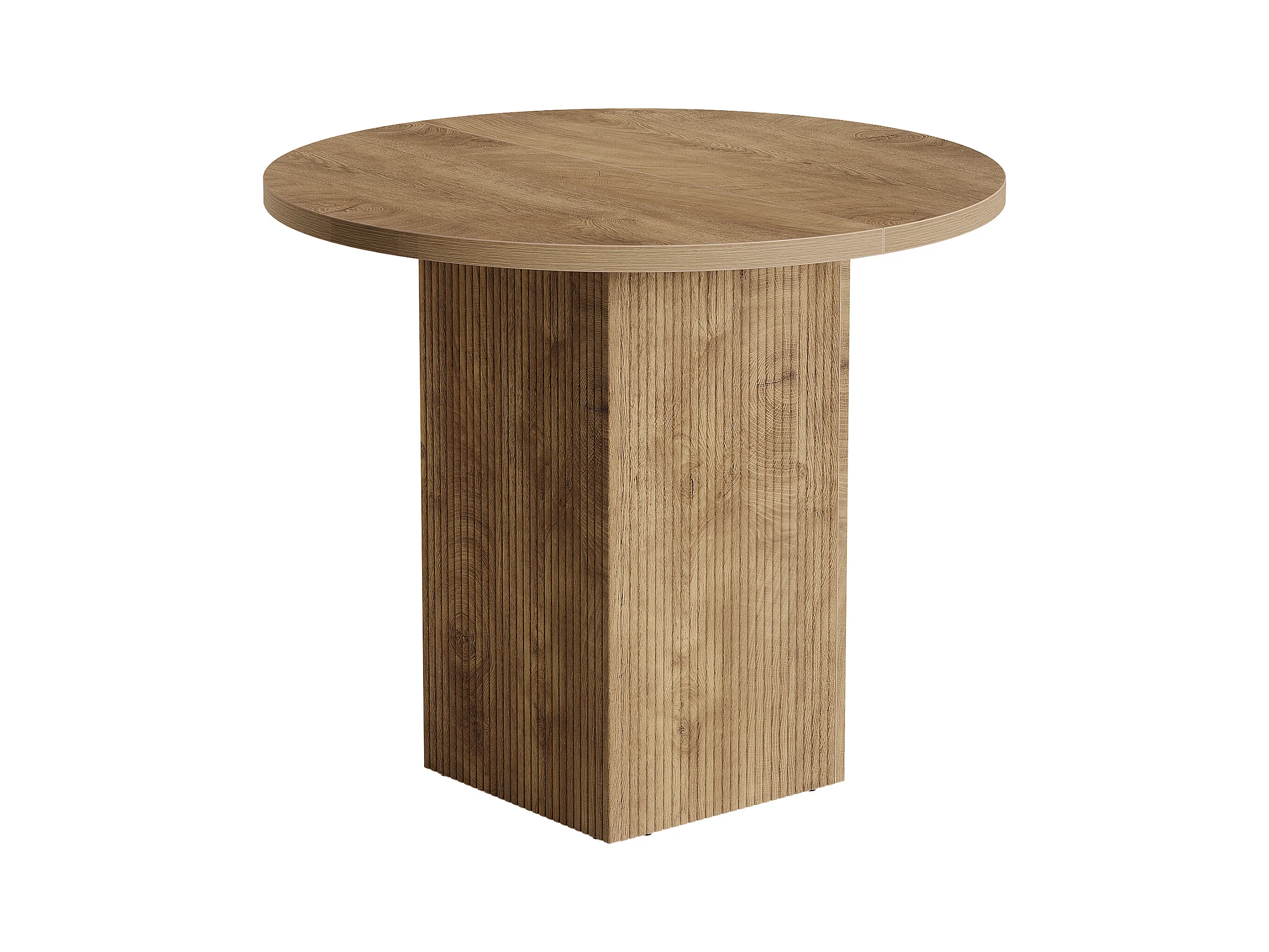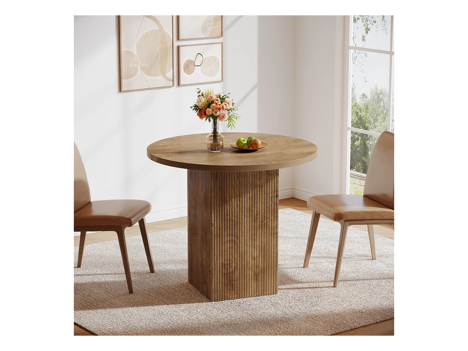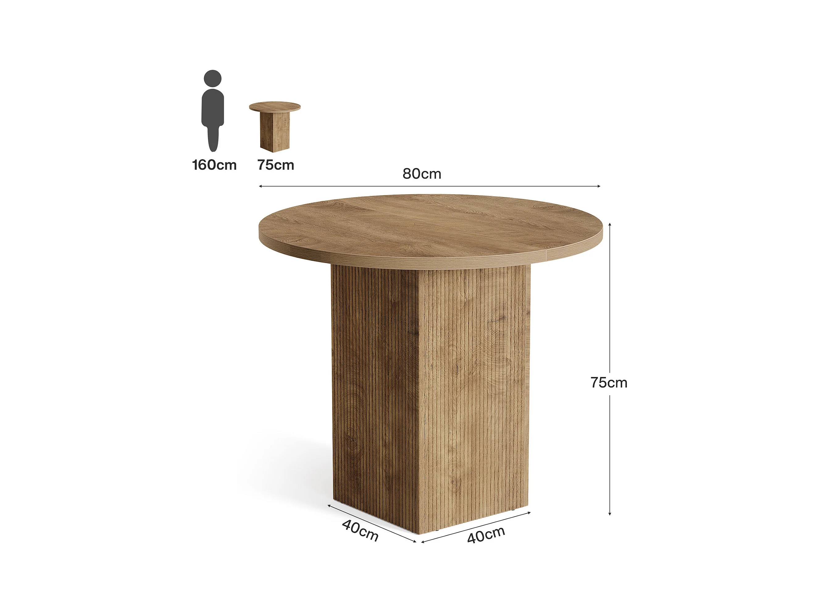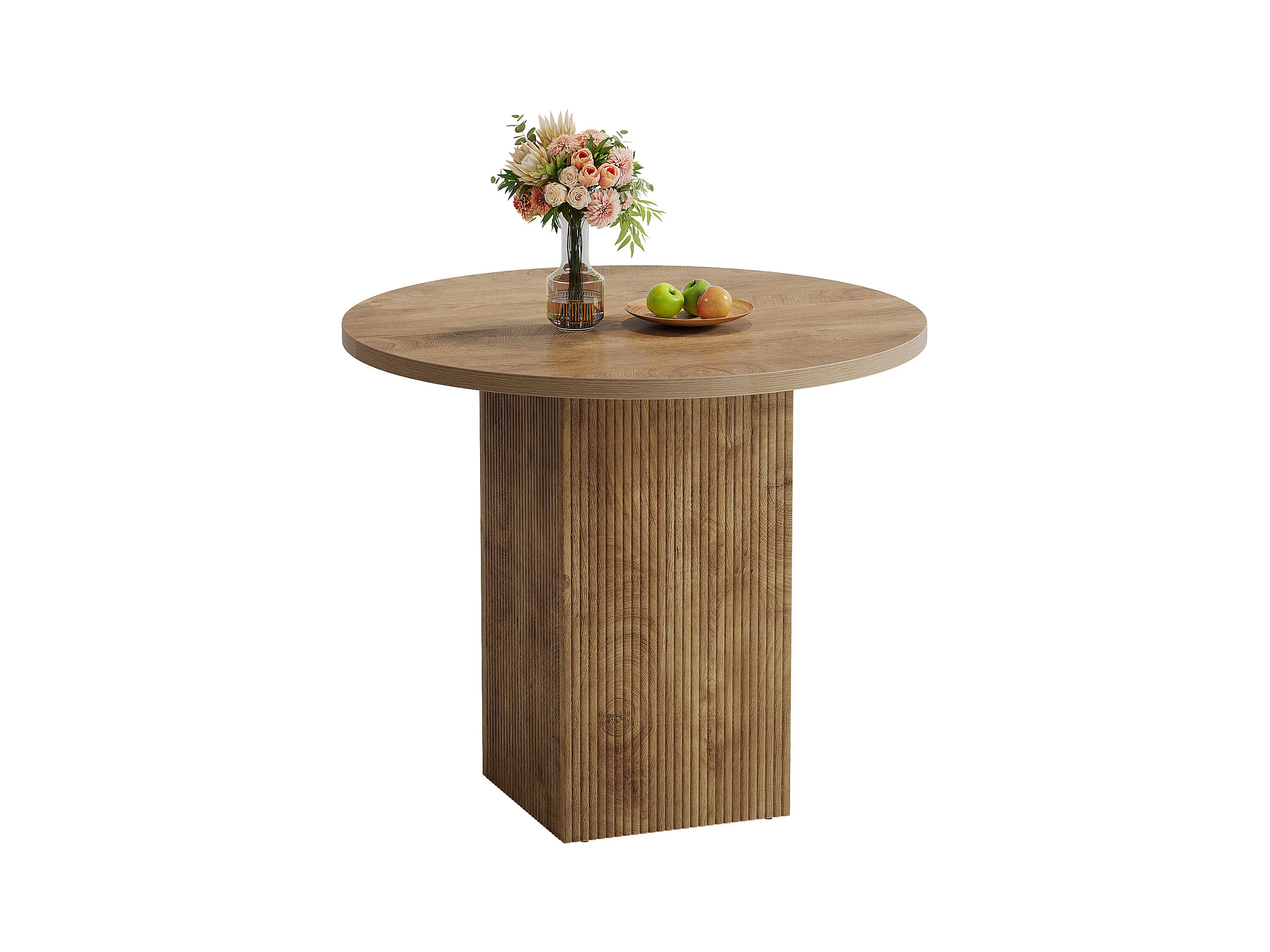 Petite table à manger ronde pour 2 personnes, 80 cm, avec piédestal cannelé en bois, idéale pour petits espaces, salle à manger, cuisine, appartement, marron