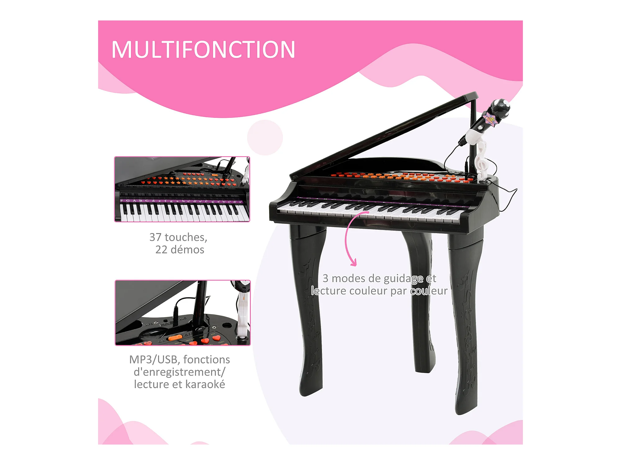 Piano à queue électronique 37 touches multifonctions avec micro haut parleur noir