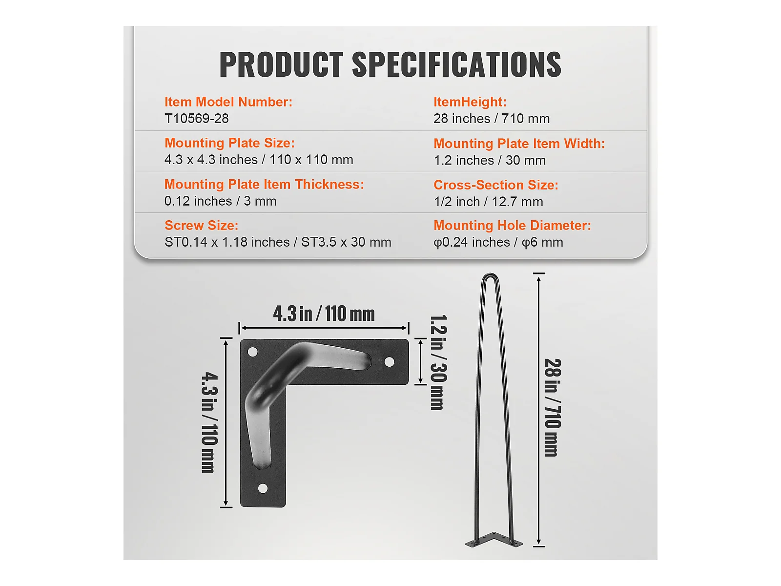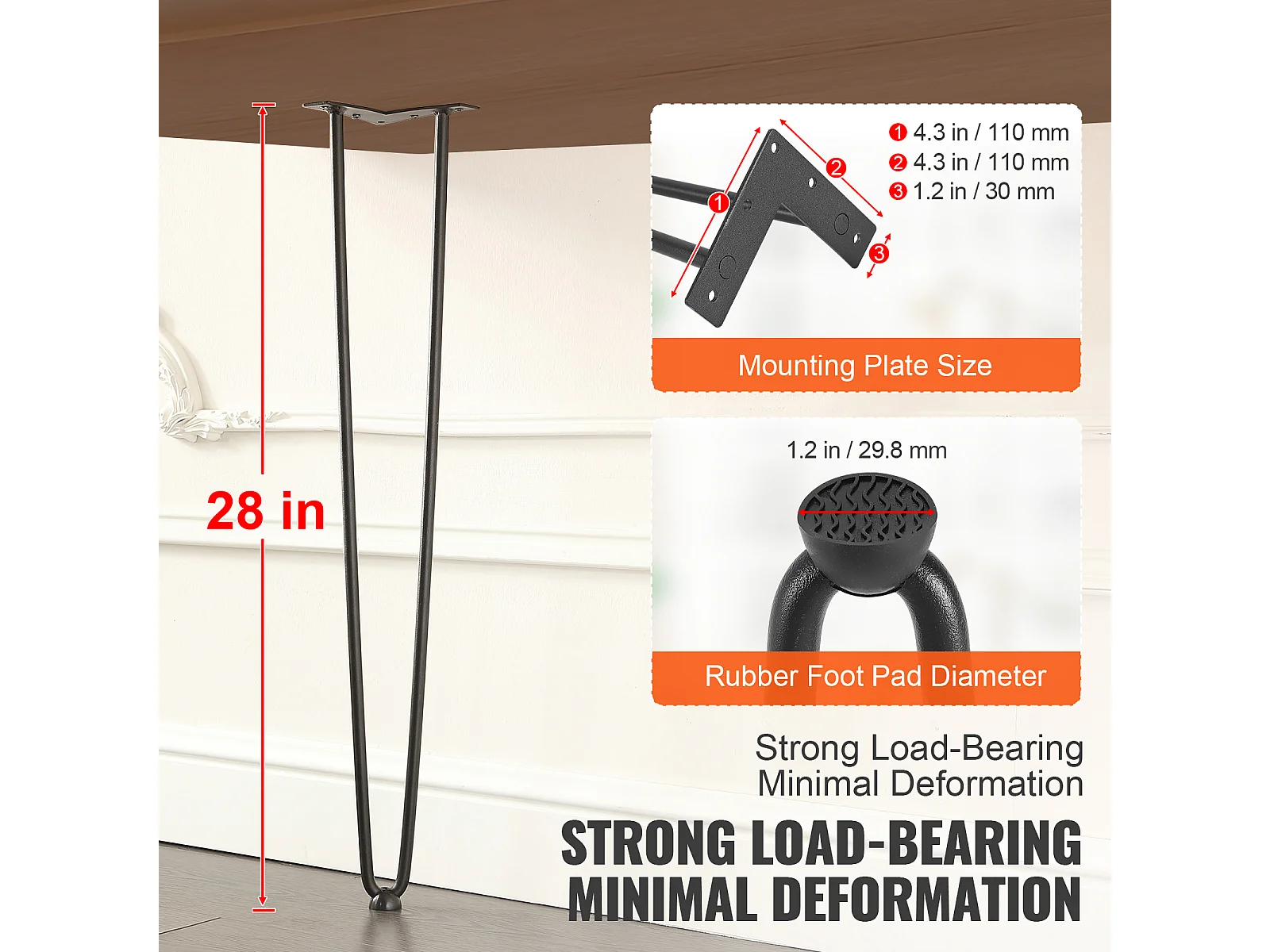 Pieds de Meuble SucceBuy, 71.12cm, Métal, Robuste, Table à Manger, Moderne, Parfaits pour Meubles de Salon et Design Contemporain