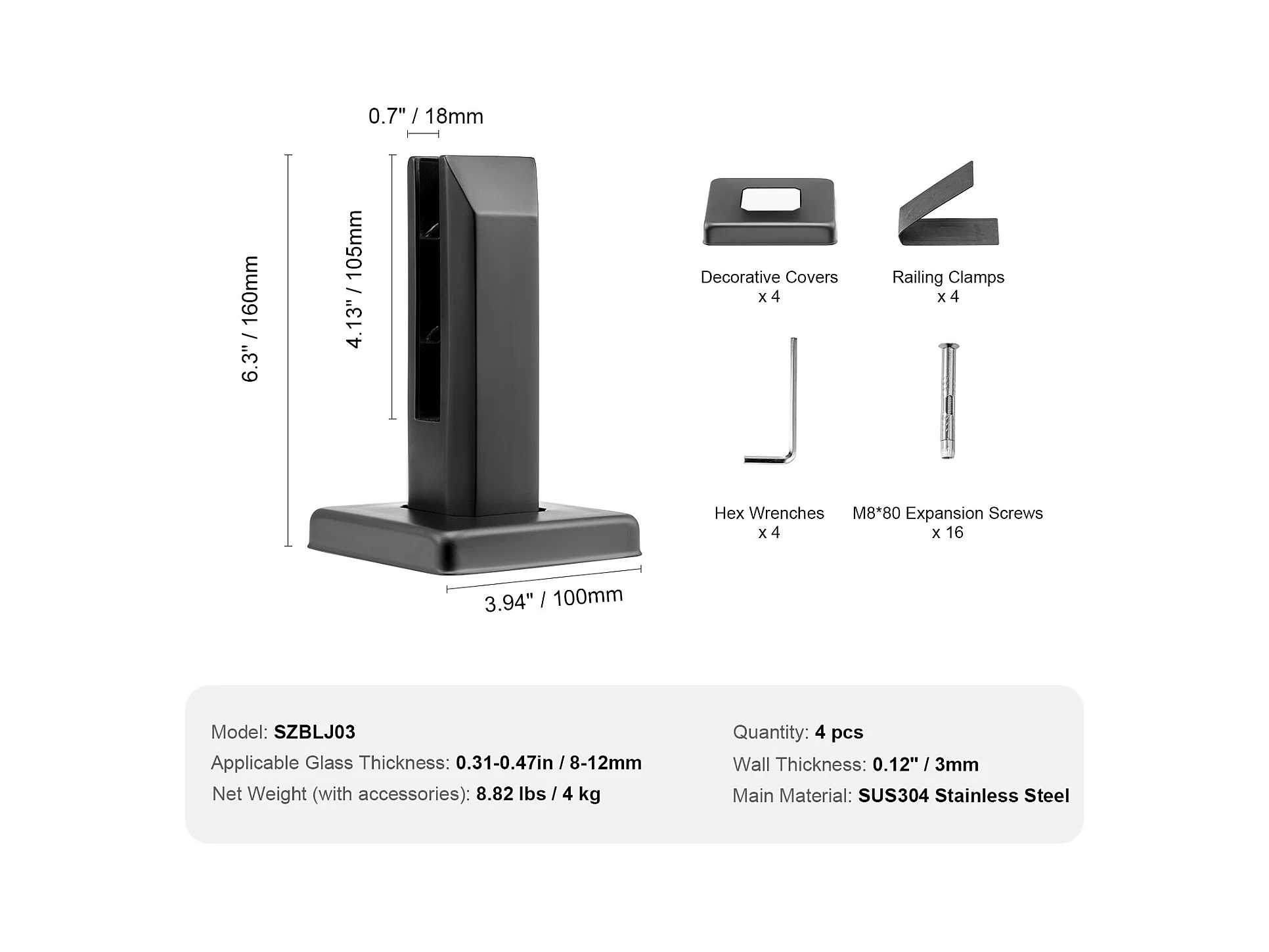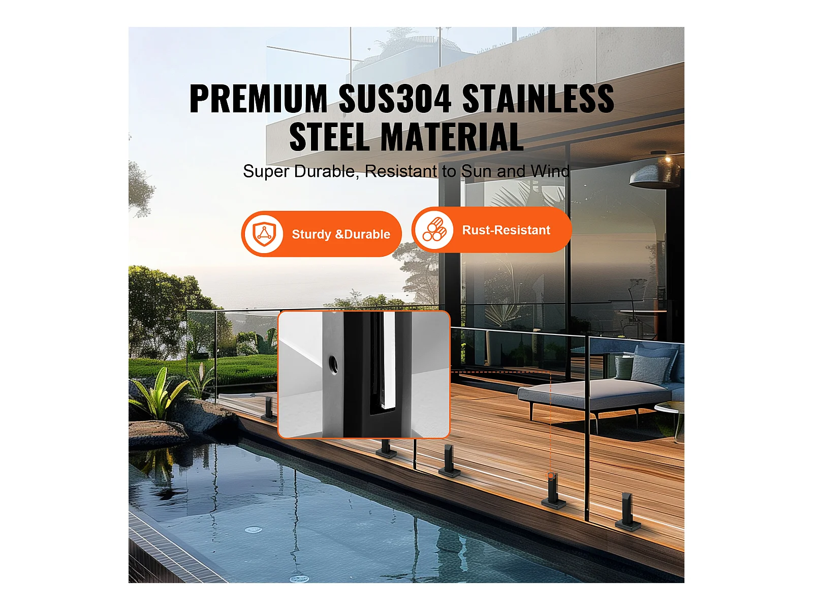 Pince à Verre SucceBuy Carrée pour Garde-Corps en Verre 8 à 12 mm 4 Pcs Balcon Noir
