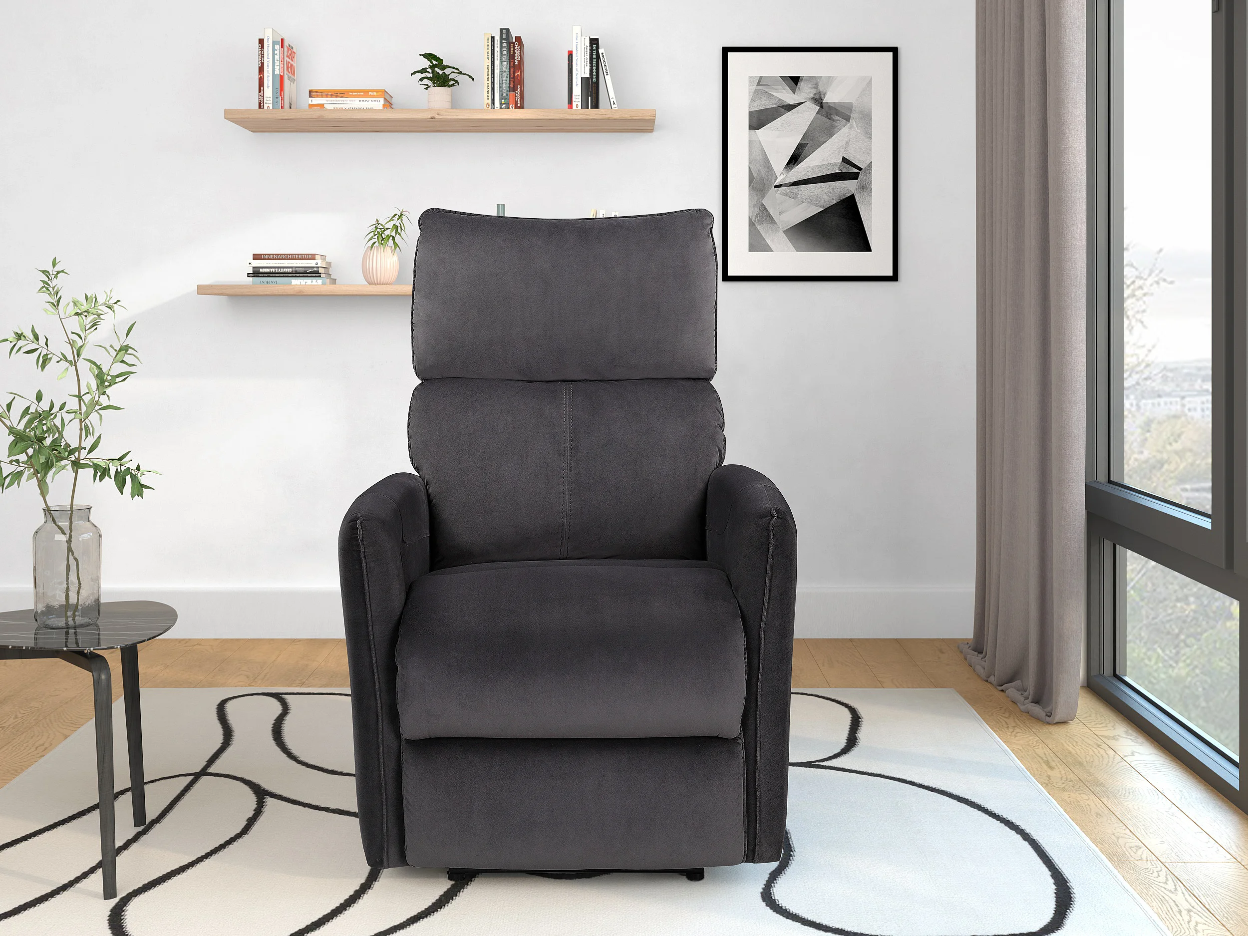 Pineto | Fauteuil de relaxation avec fonction électrique en velours anthracite