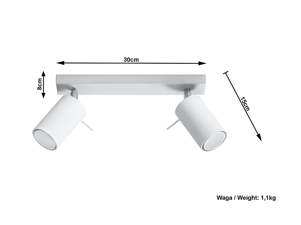 Plafonnier 2 lampes design RANDY - acier - blanc