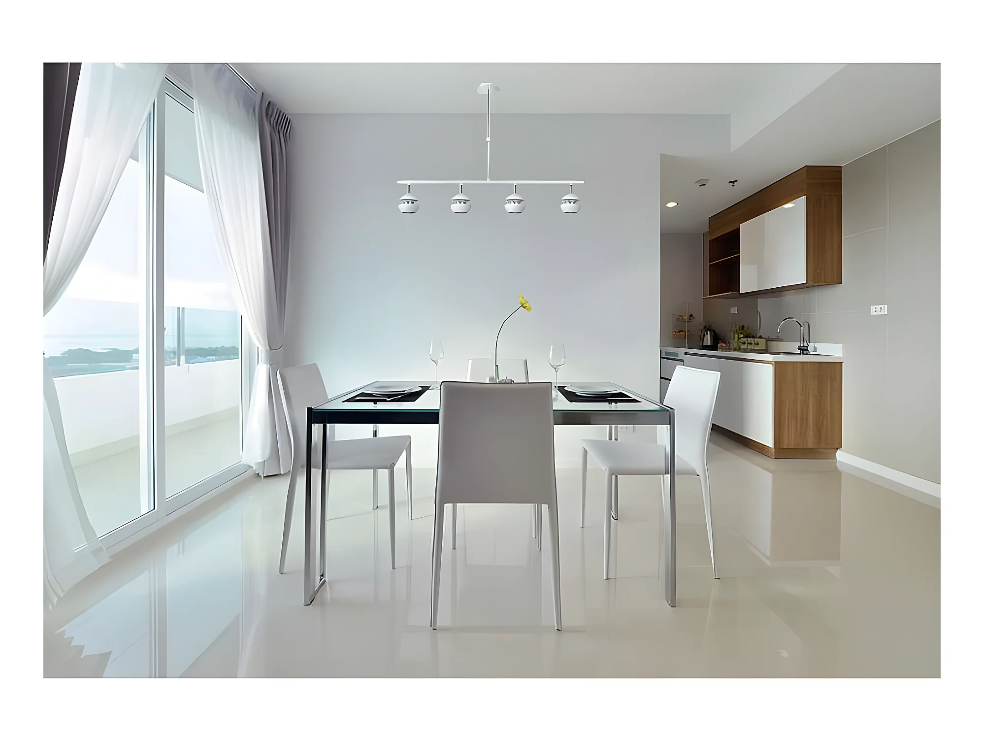 Plafonnier Beethoven linéaire à quatre lumières Blanc/argent FABRILAMP