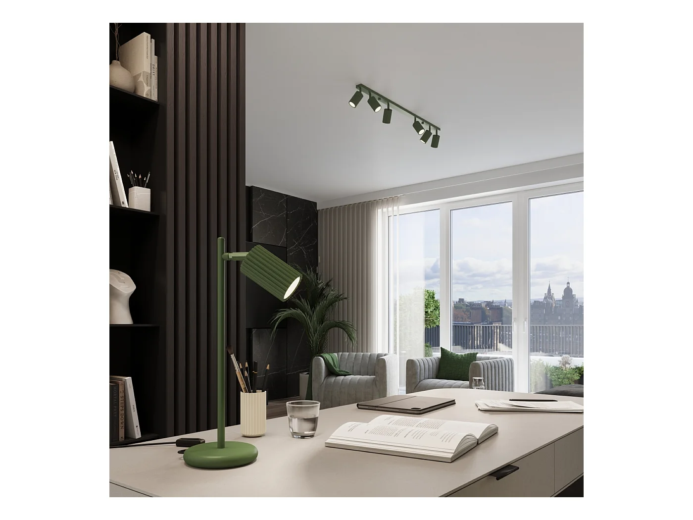 Plafonnier Karbon Minimaliste En Aluminium - 4 Sources Lumineuses - L.81 X H.16,5 Cm - Vert Olive