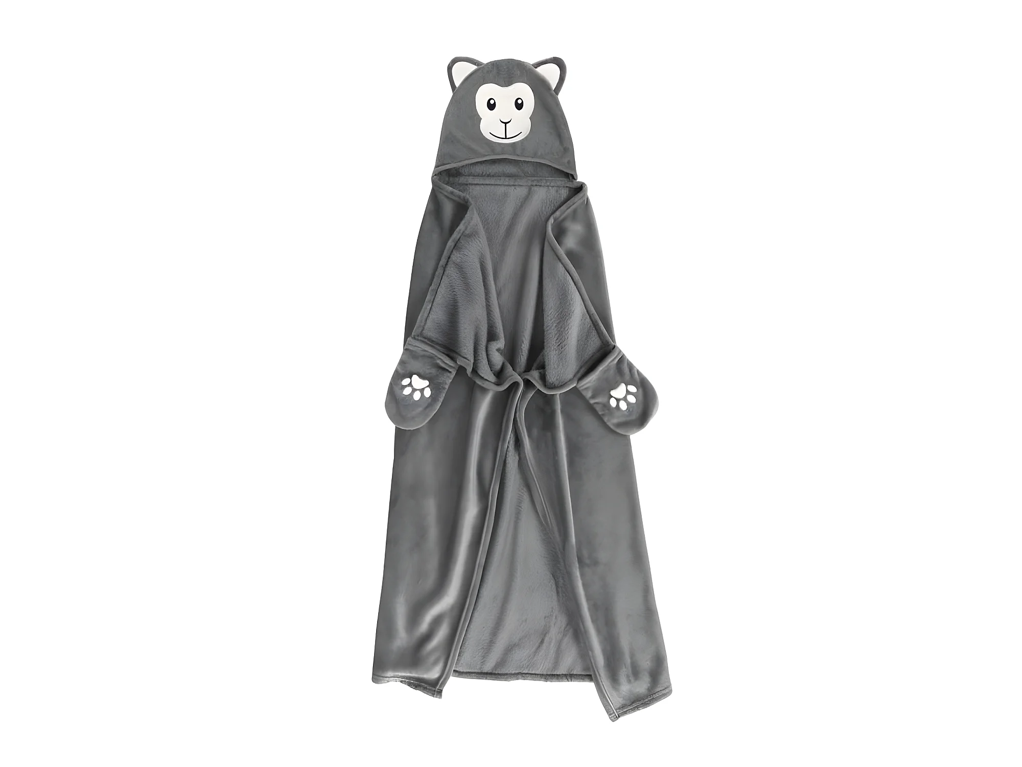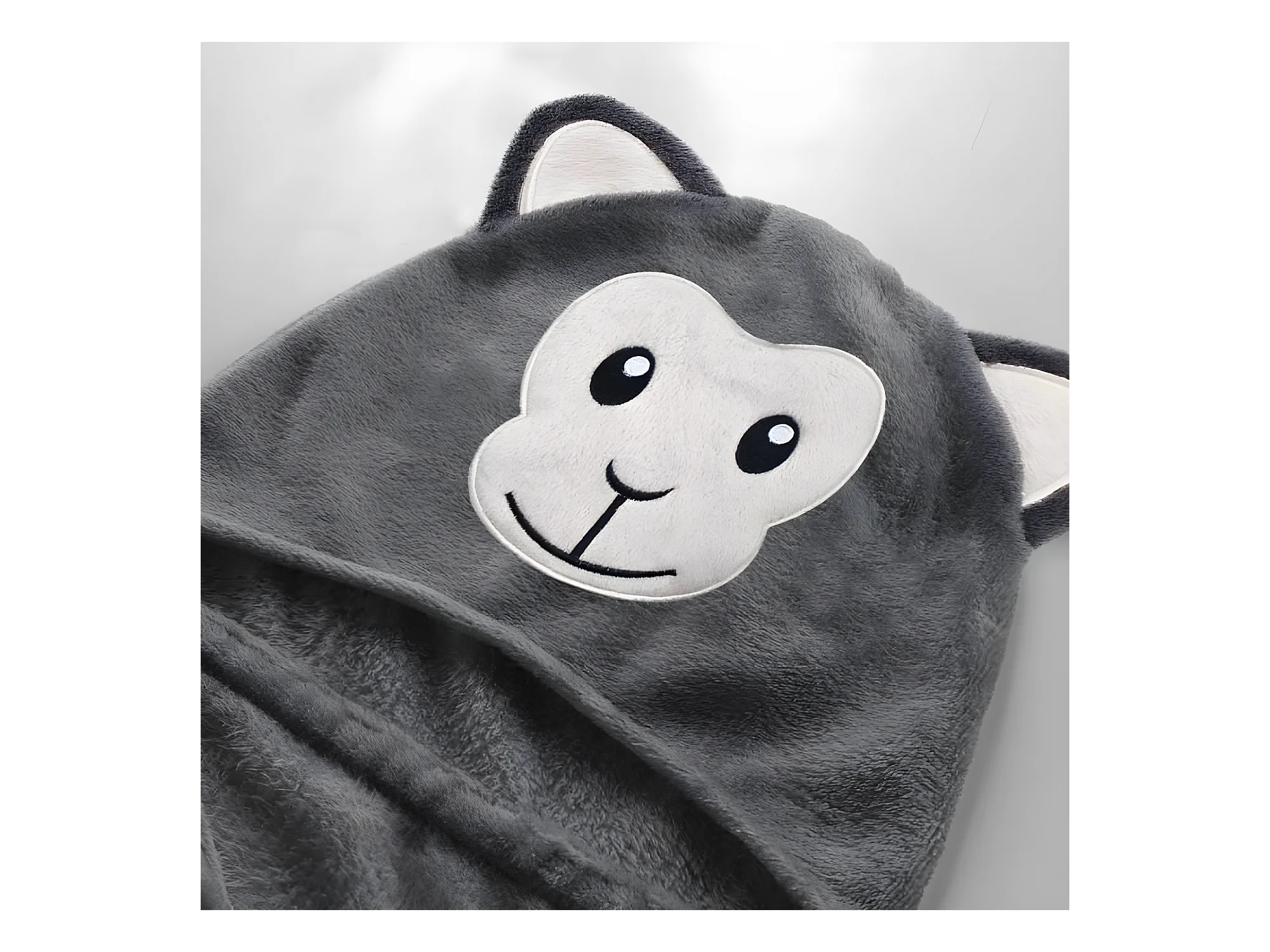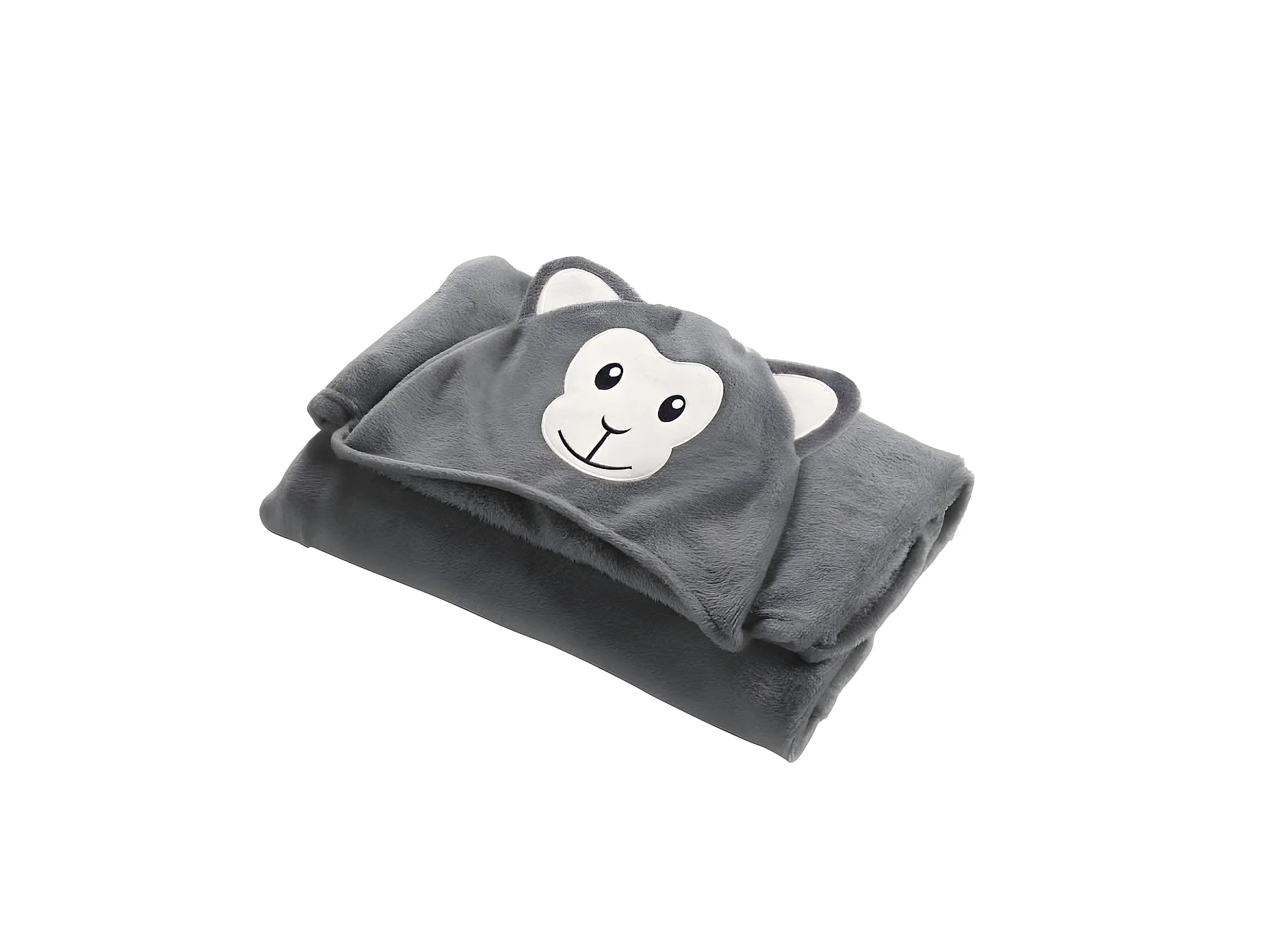 Plaid à Capuche Enfant "Singe" 100x120cm Gris
