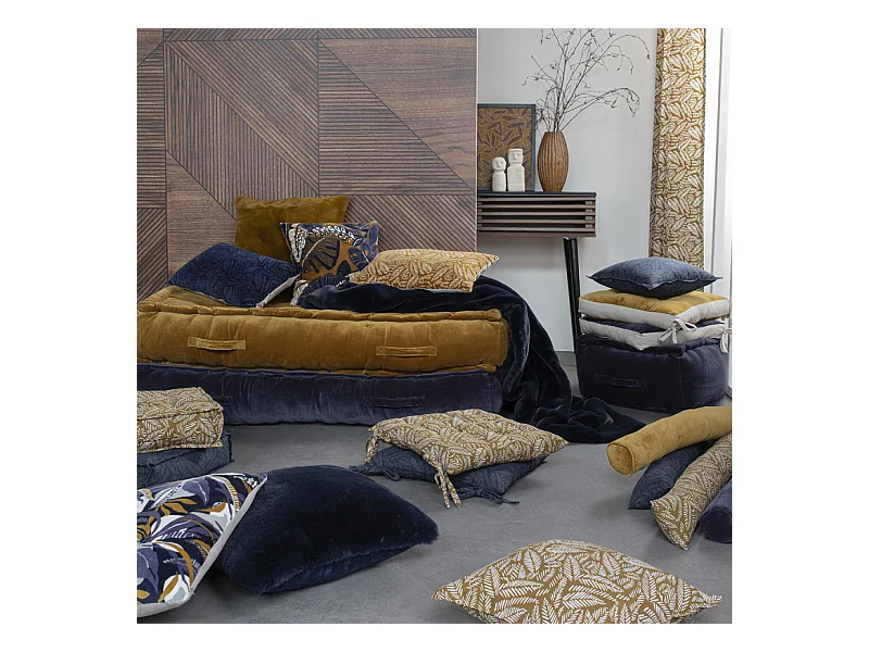 Set de plaid + coussin en tissu peluche "Cocoon" - Bleu Marine - 125 x 150 cm