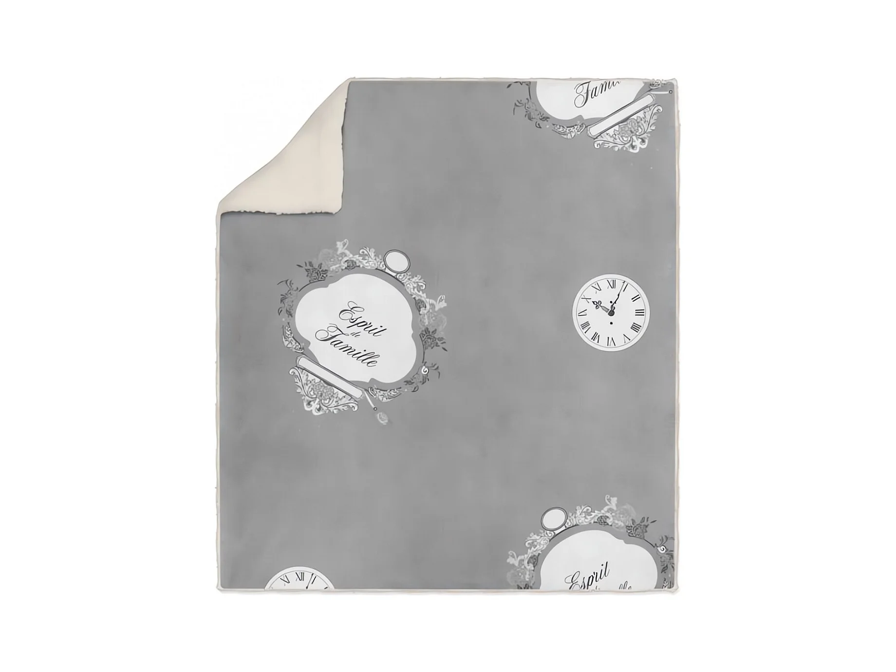 Plaid polaire imprimé sherpa - 110 x 170 cm - Famille - Gris