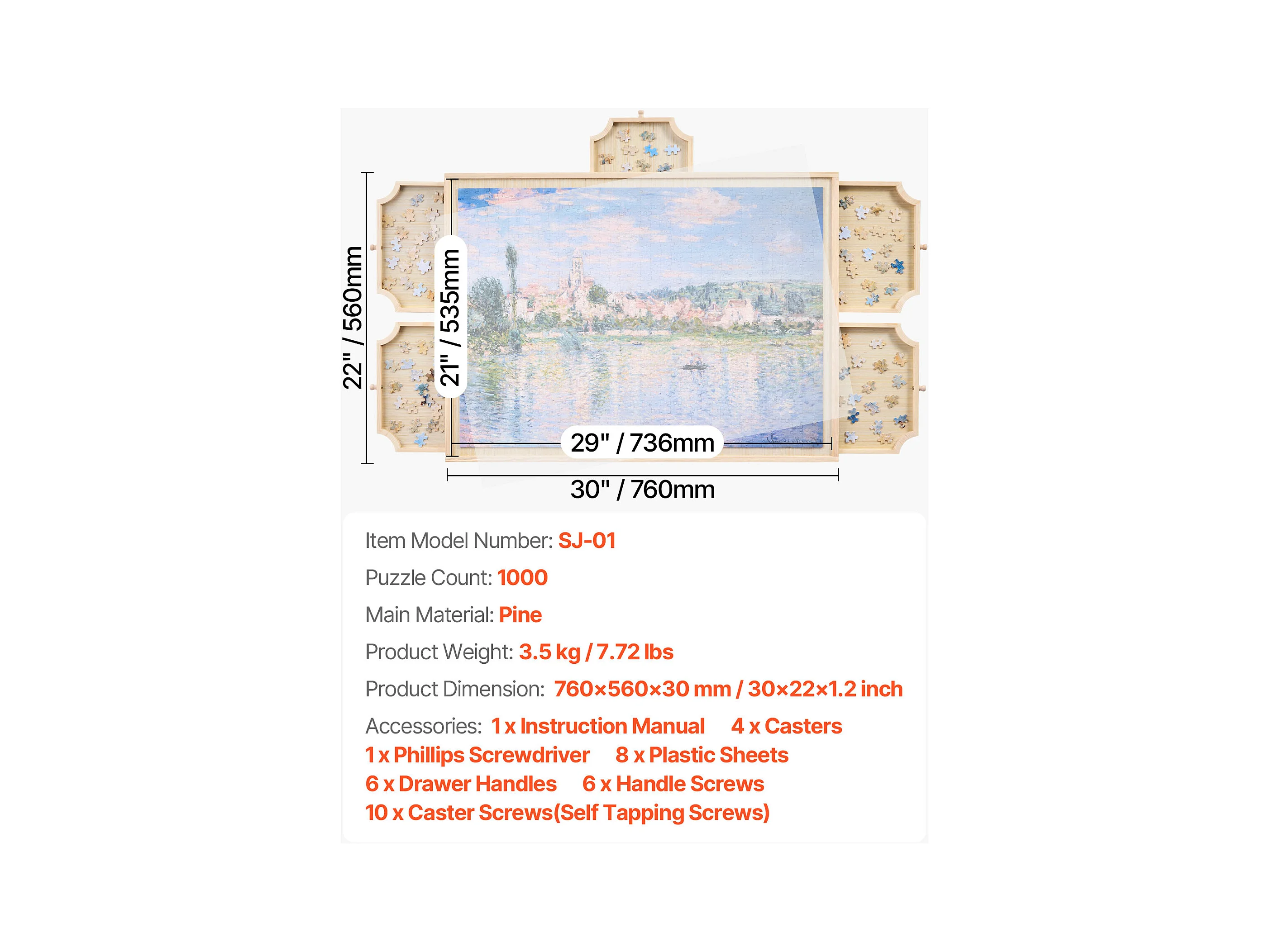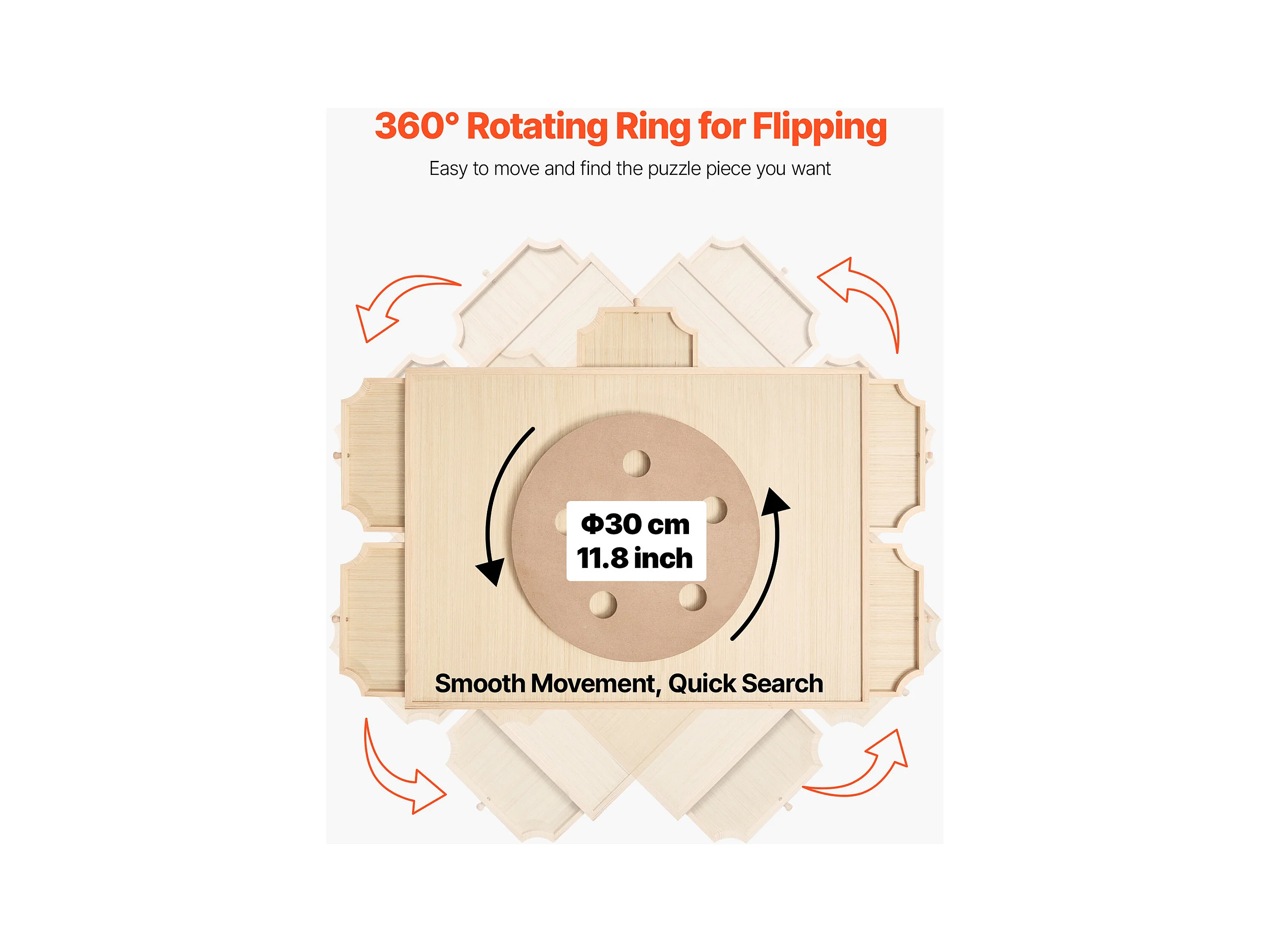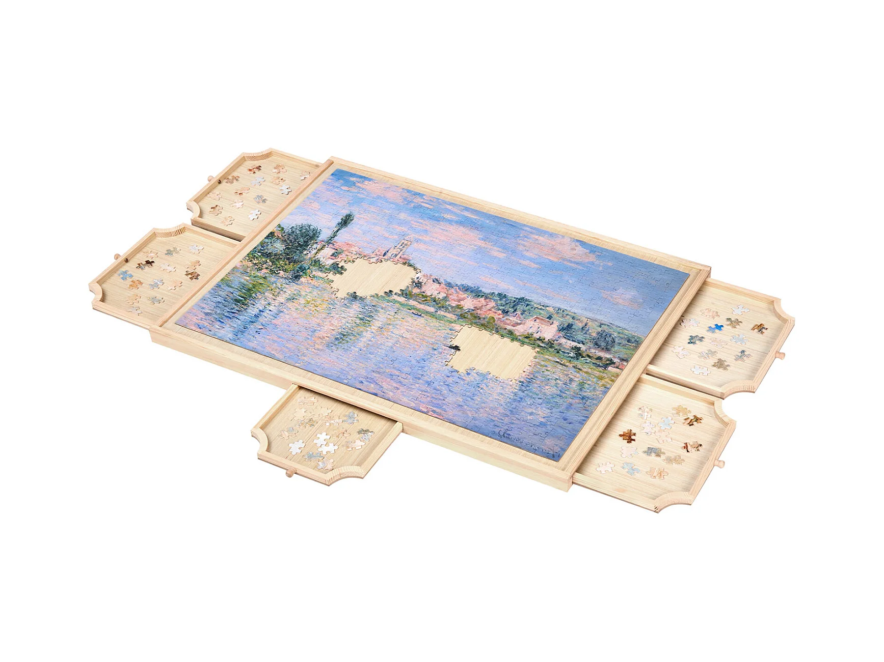 Planche de Puzzle SucceBuy 1000 Pièces, Table de Puzzle en Bois 73.6 x 53.5 cm, Plateau Casse-tête Rotatif à 360° et Portable, avec 5 Tiroirs et Couverture Utile