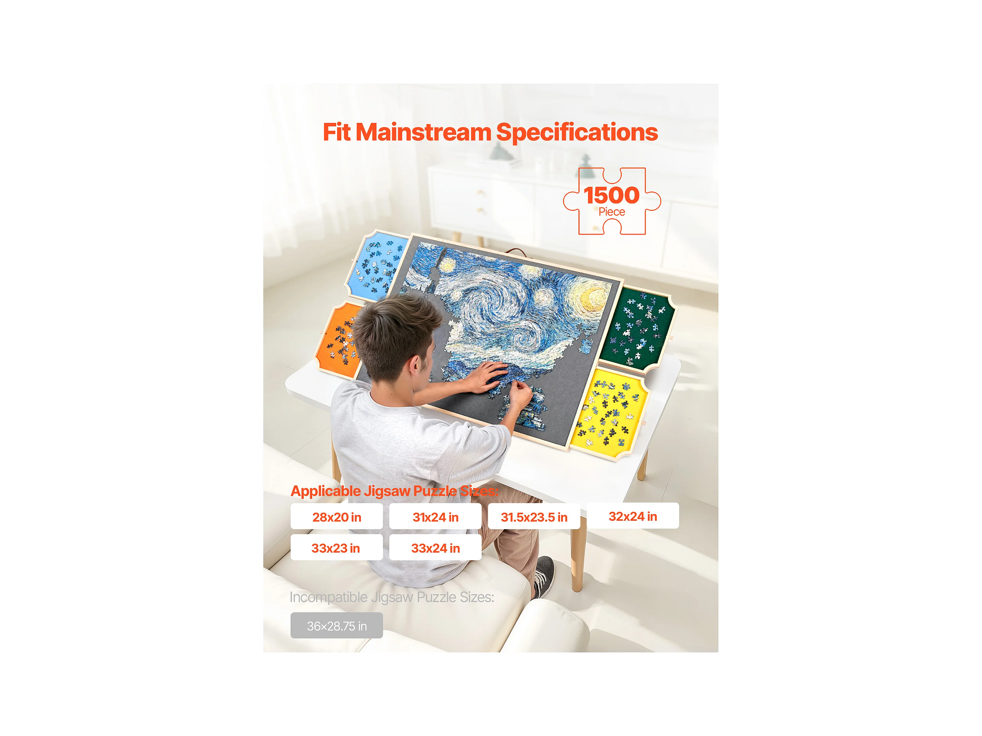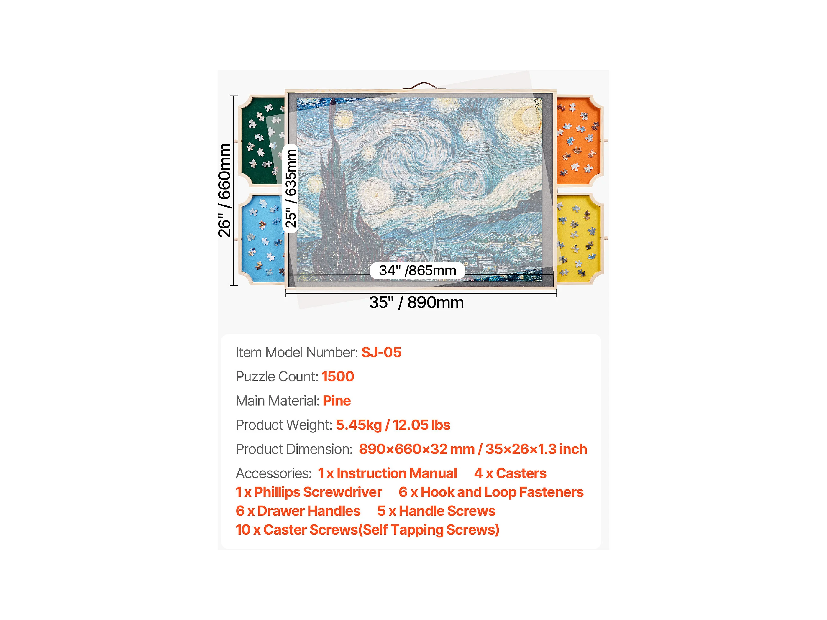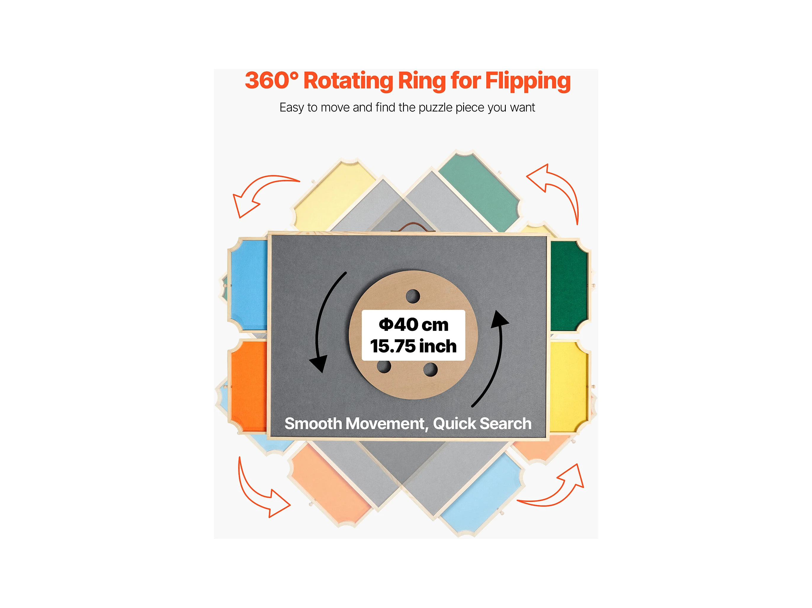 Planche de Puzzle SucceBuy 1500 Pièces, Table de Puzzle en Bois 86.5x63.5 cm, Plateau Casse-Tête Rotatif Portable, avec 4 Tiroirs Colorés et Couverture