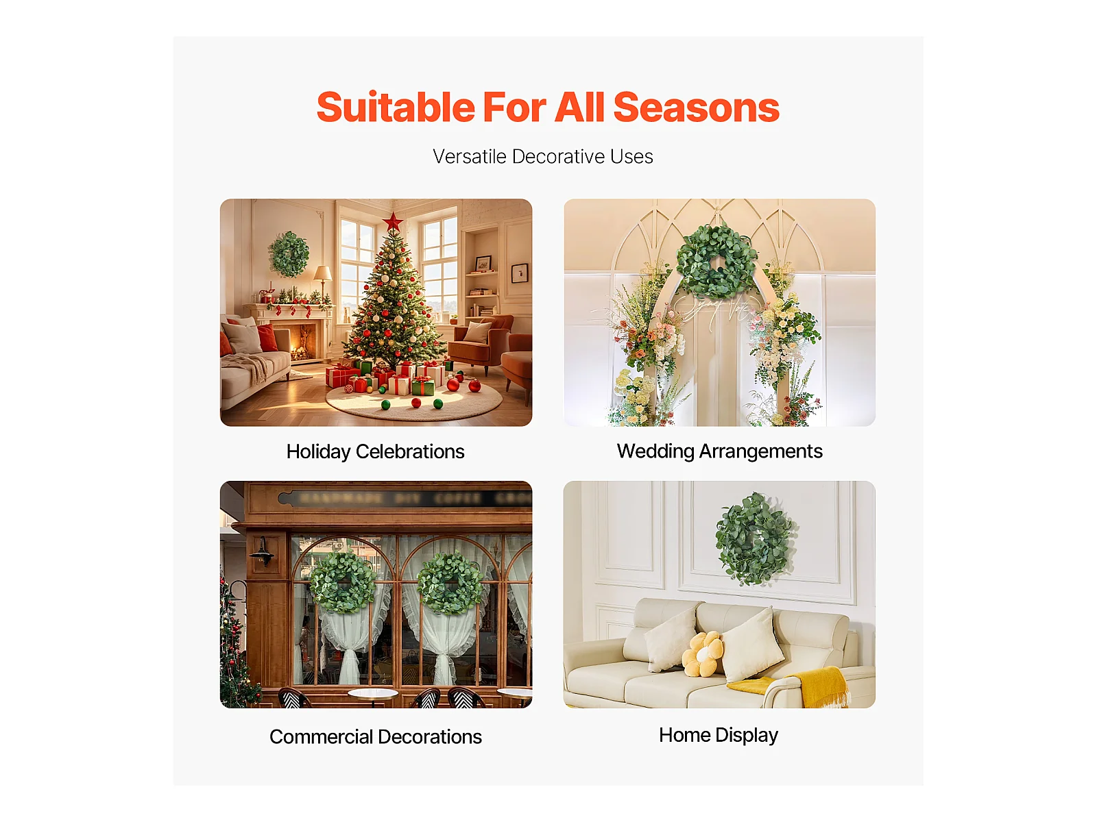 Plante Artificielle, SucceBuy Couronne Artificielle de 66,04 cm, Feuilles d'Eucalyptus Vertes, toute l'Année