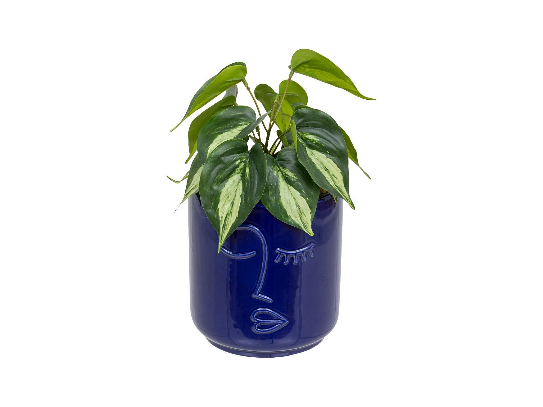 Plante verte artificielle dans pot en céramique Bleu Navy H 30 cm