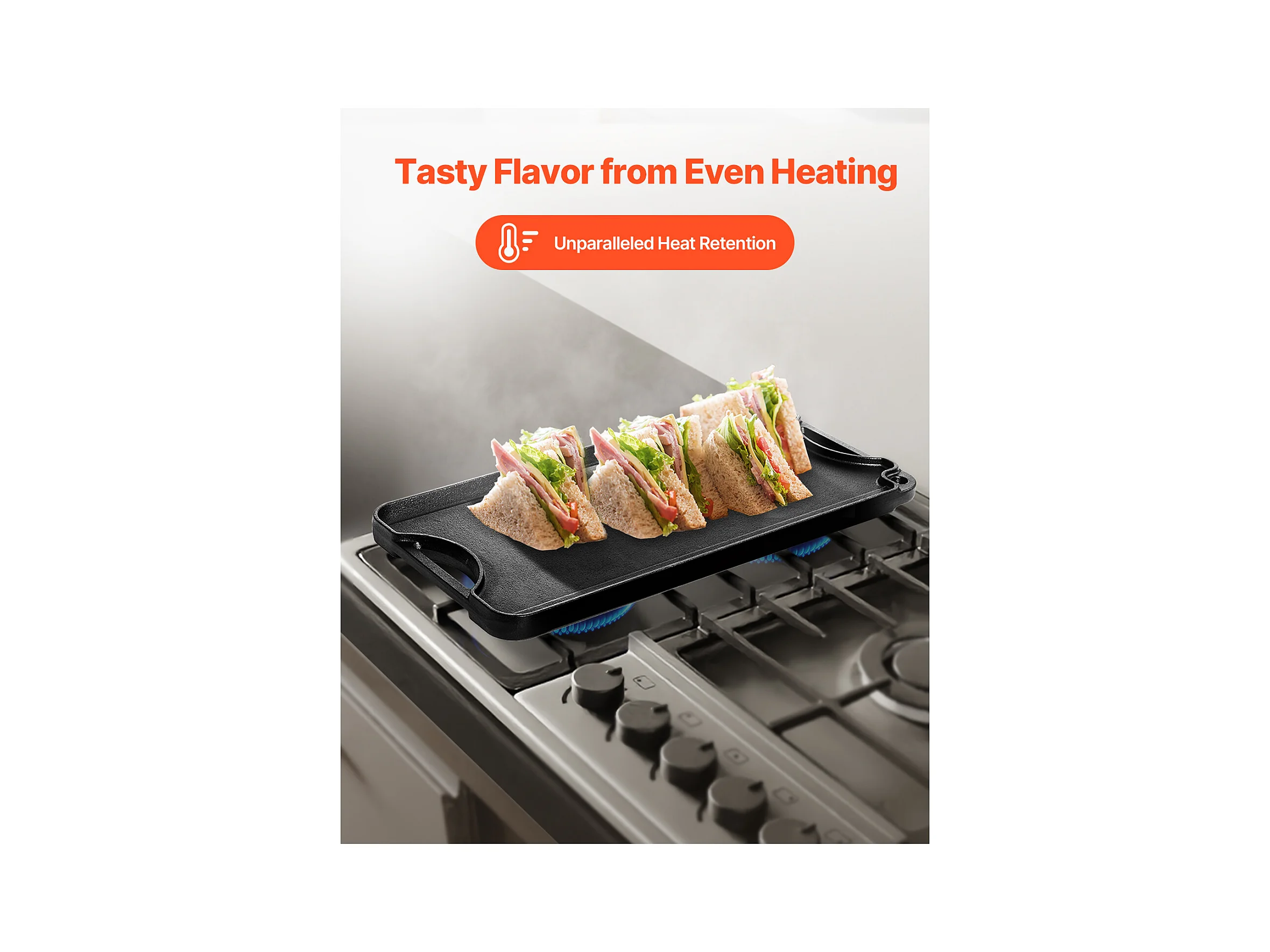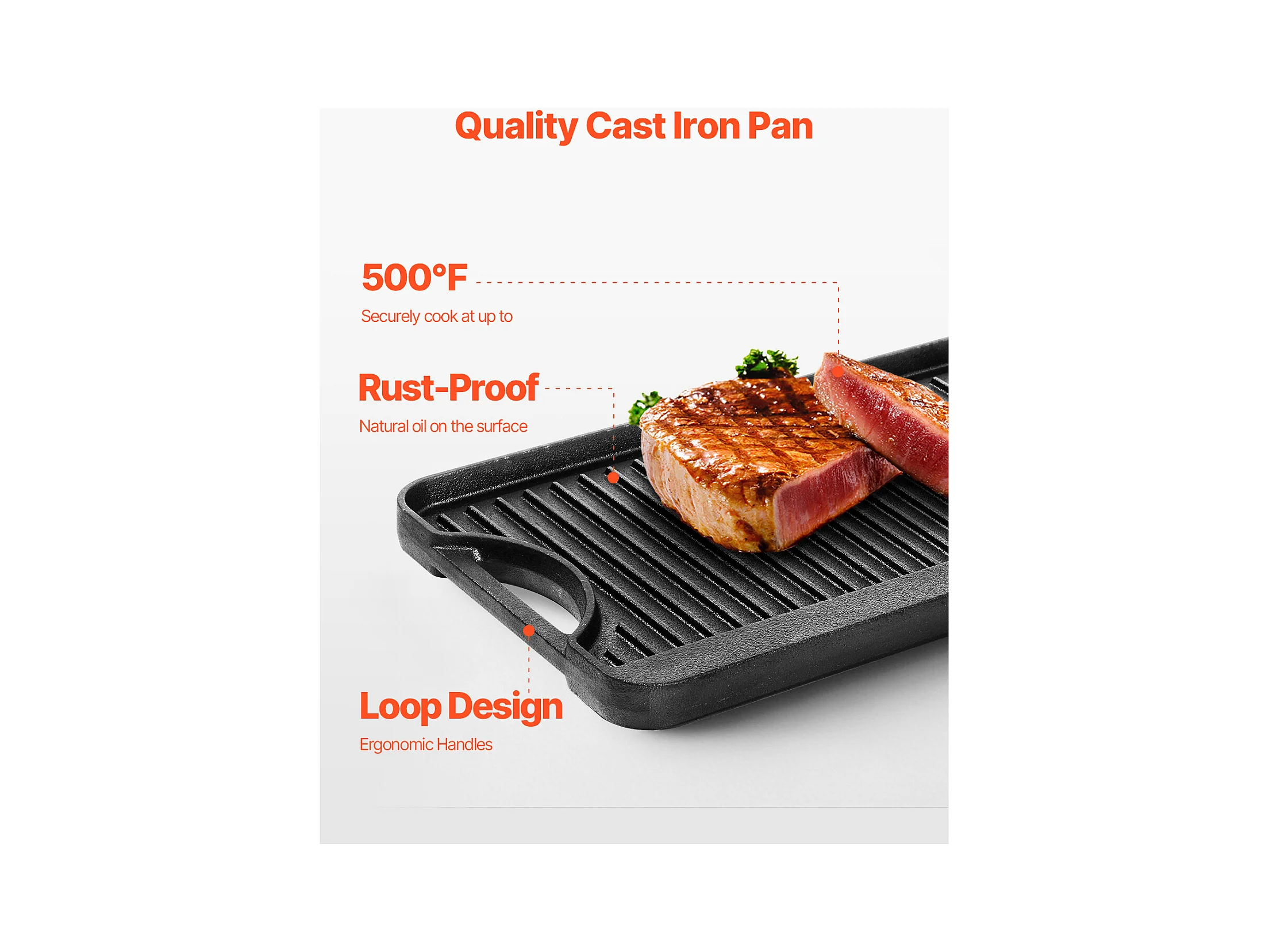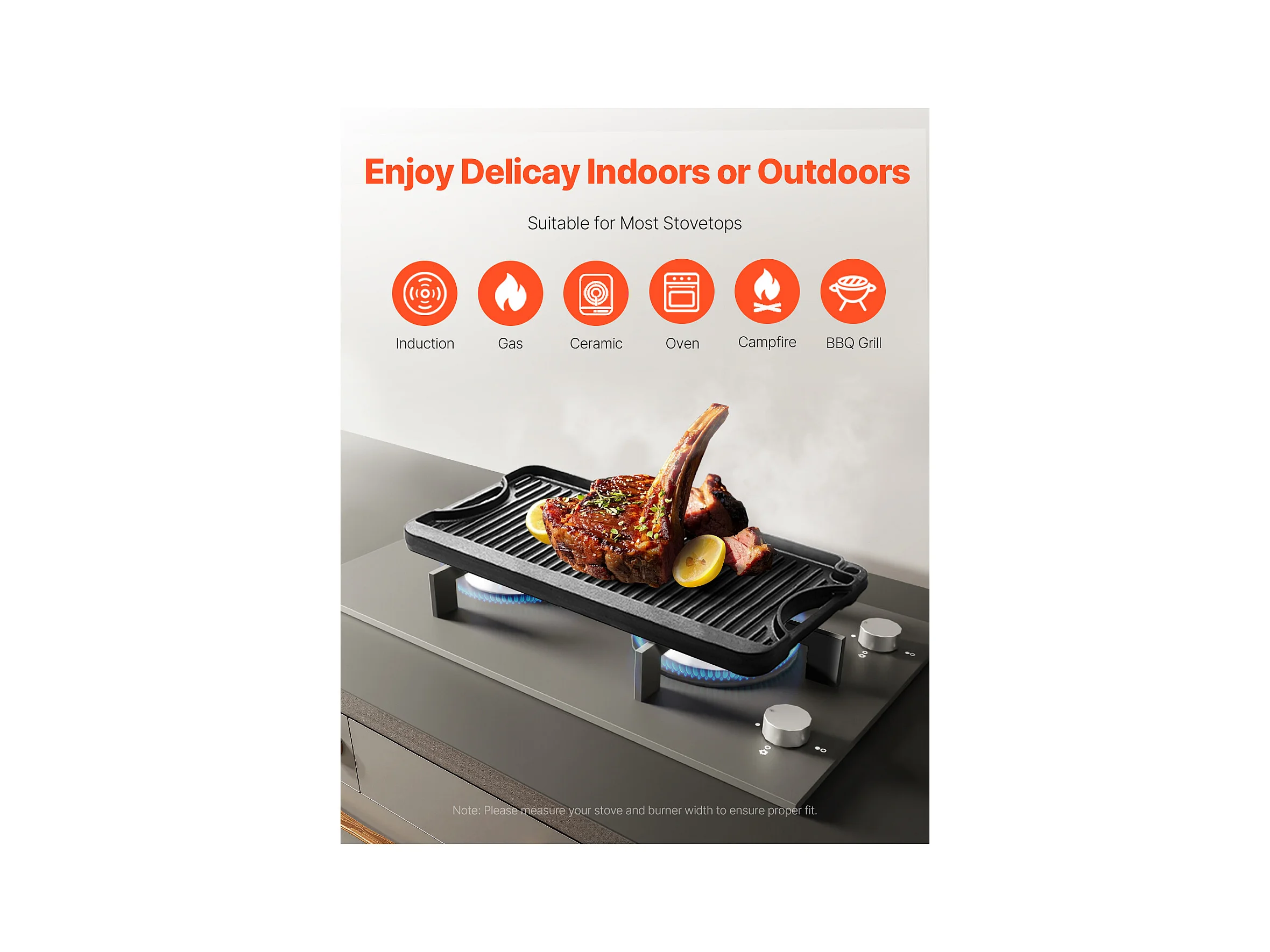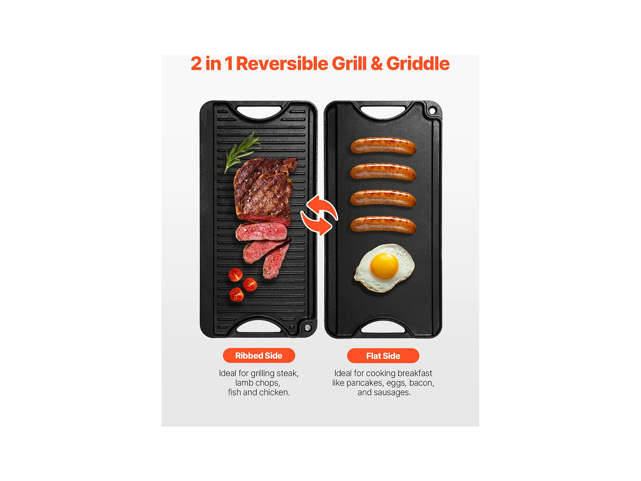 Plaque de Gril, SucceBuy Plaque de Cuisson Réversible en Fonte, Pré-Assaisonnée, 492 × 218 mm