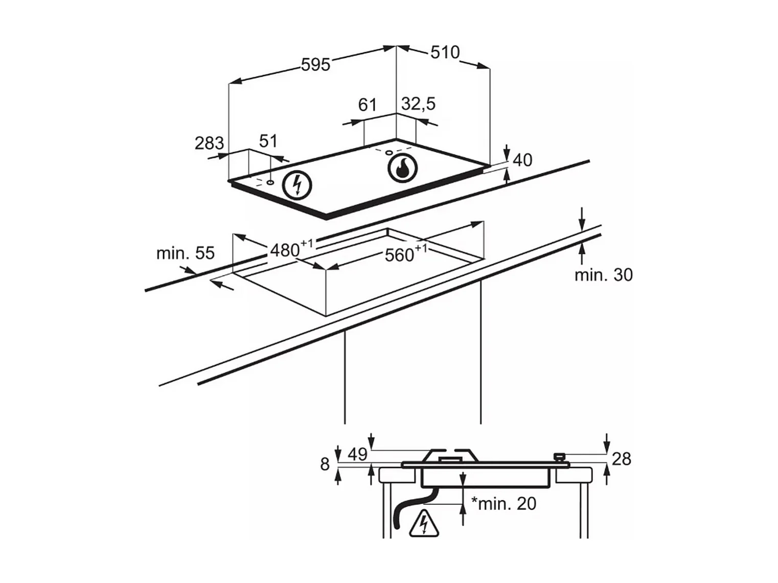 Plaque gaz CANDY 7000W 60cm, 1125282
