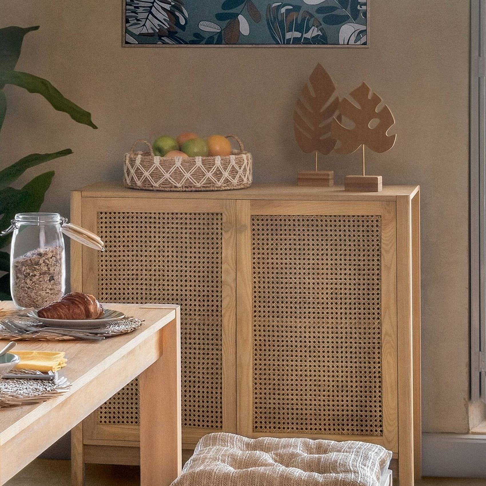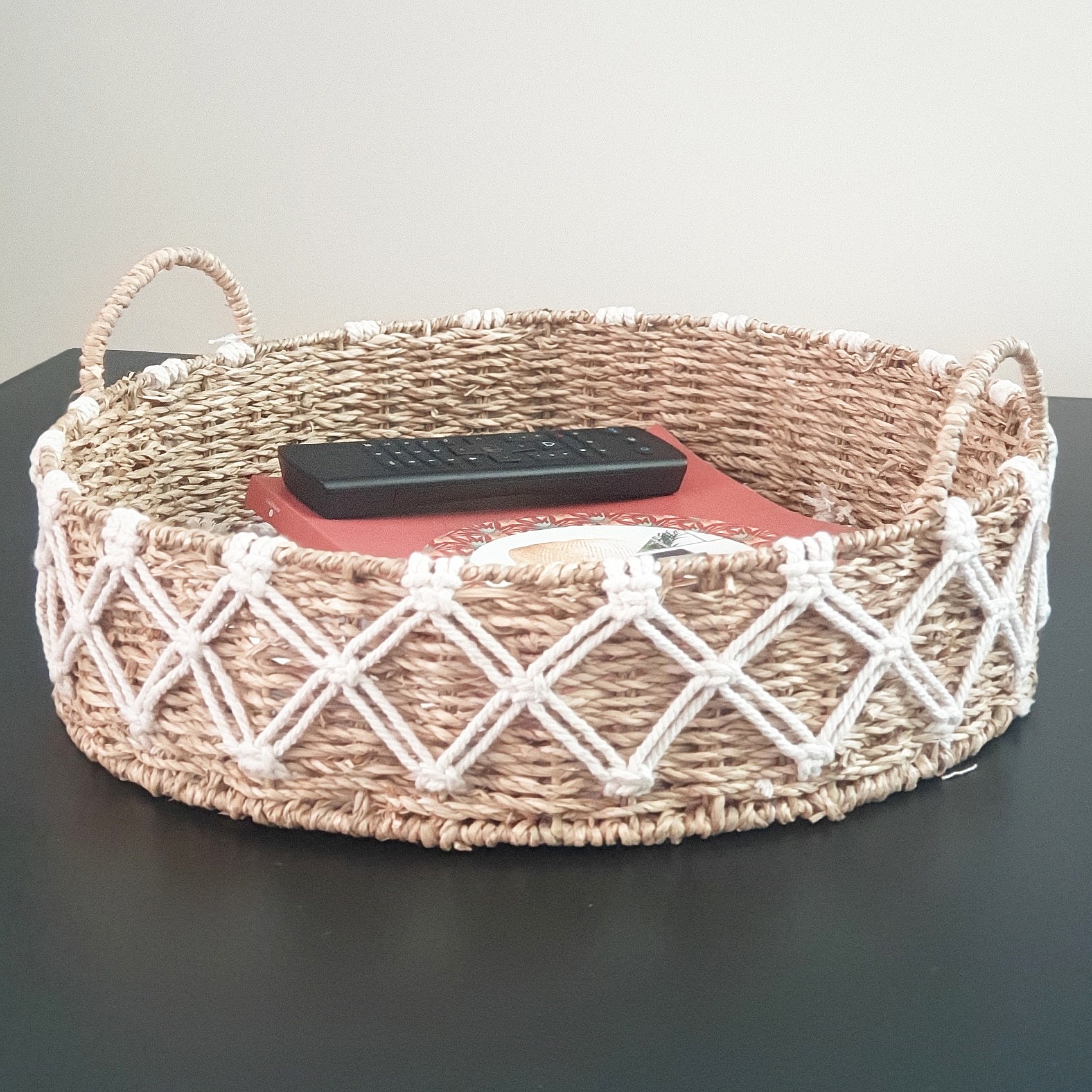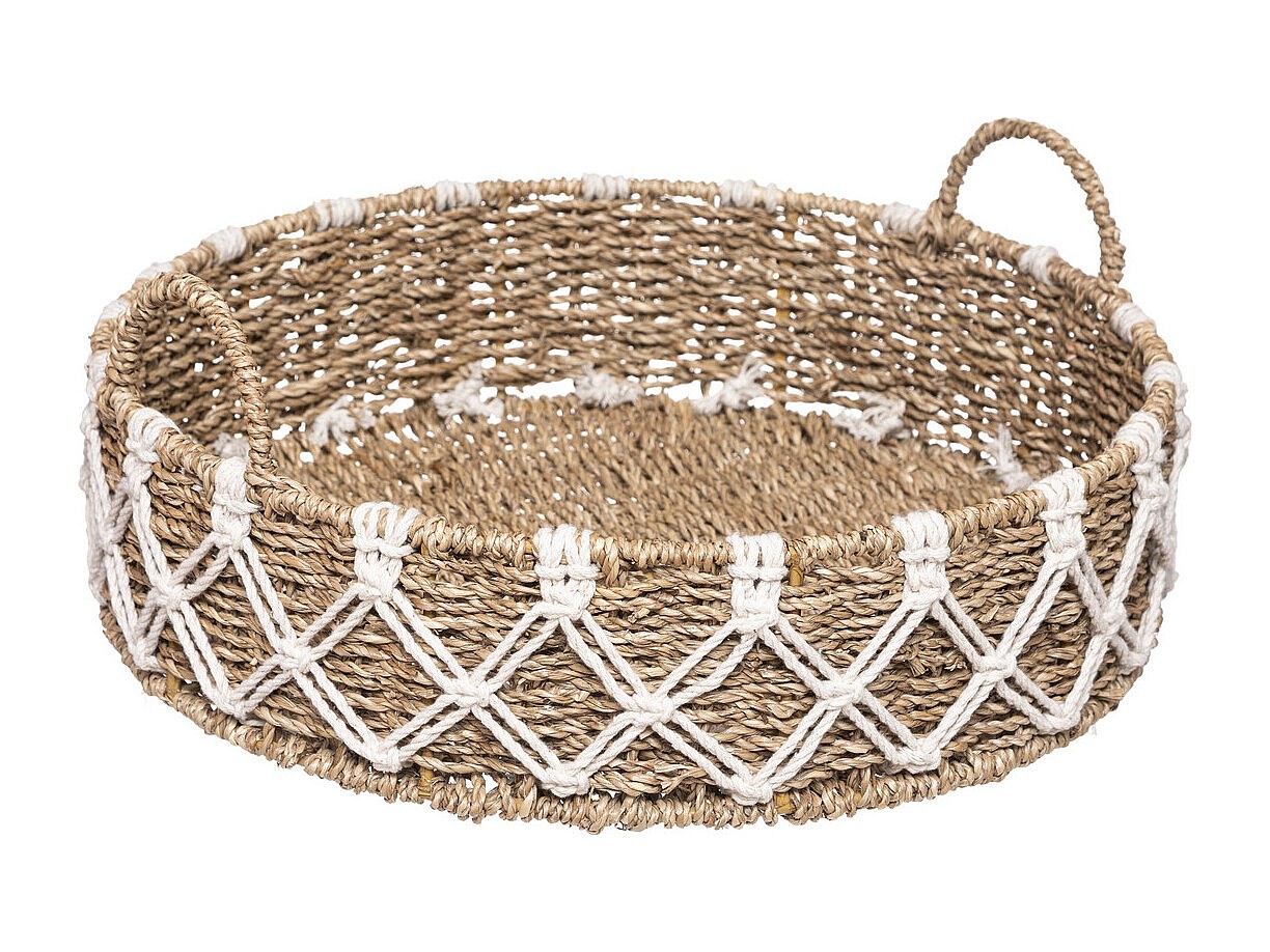 Plateau en Macramé Coton et Roseau naturel D 38.5 cm