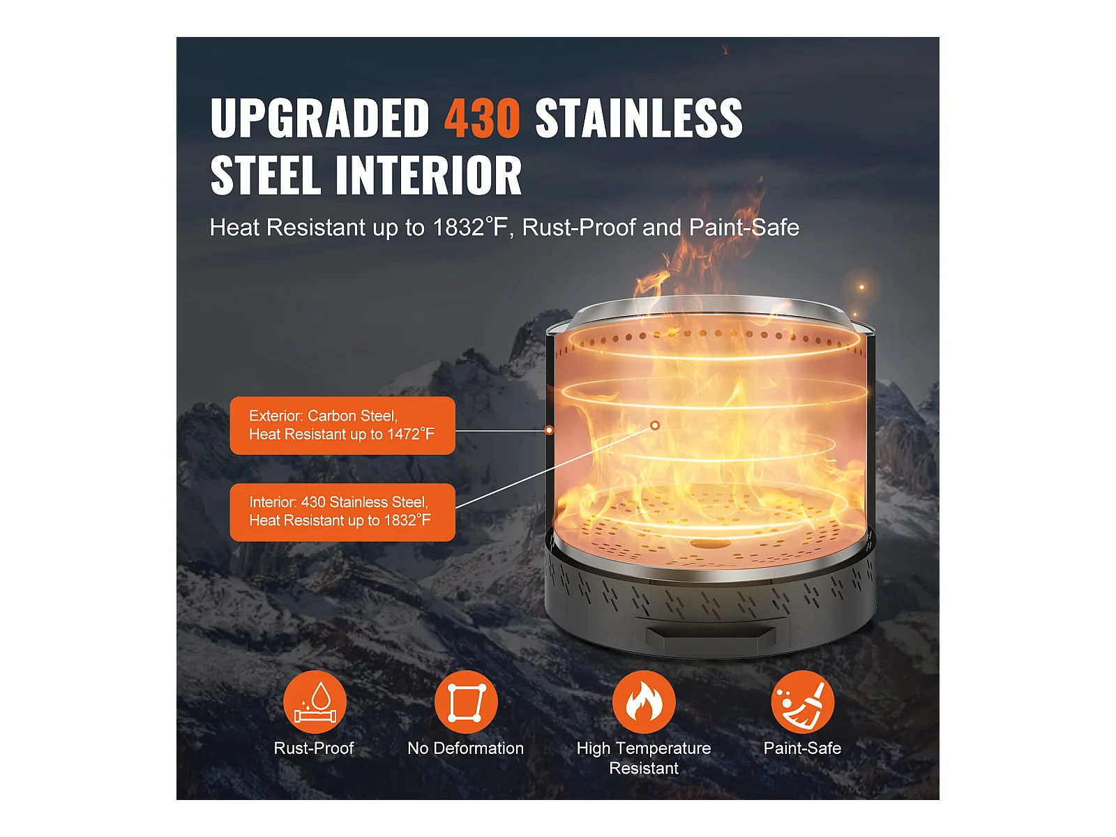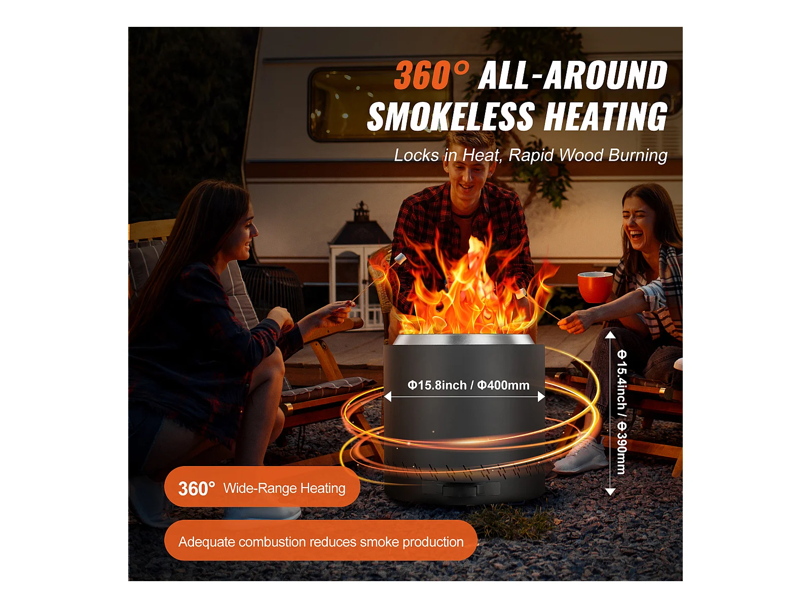 Poêle à Bois sans Fumée SucceBuy Bonfire, 400 mm de Diamètre, en Acier Inoxydable
