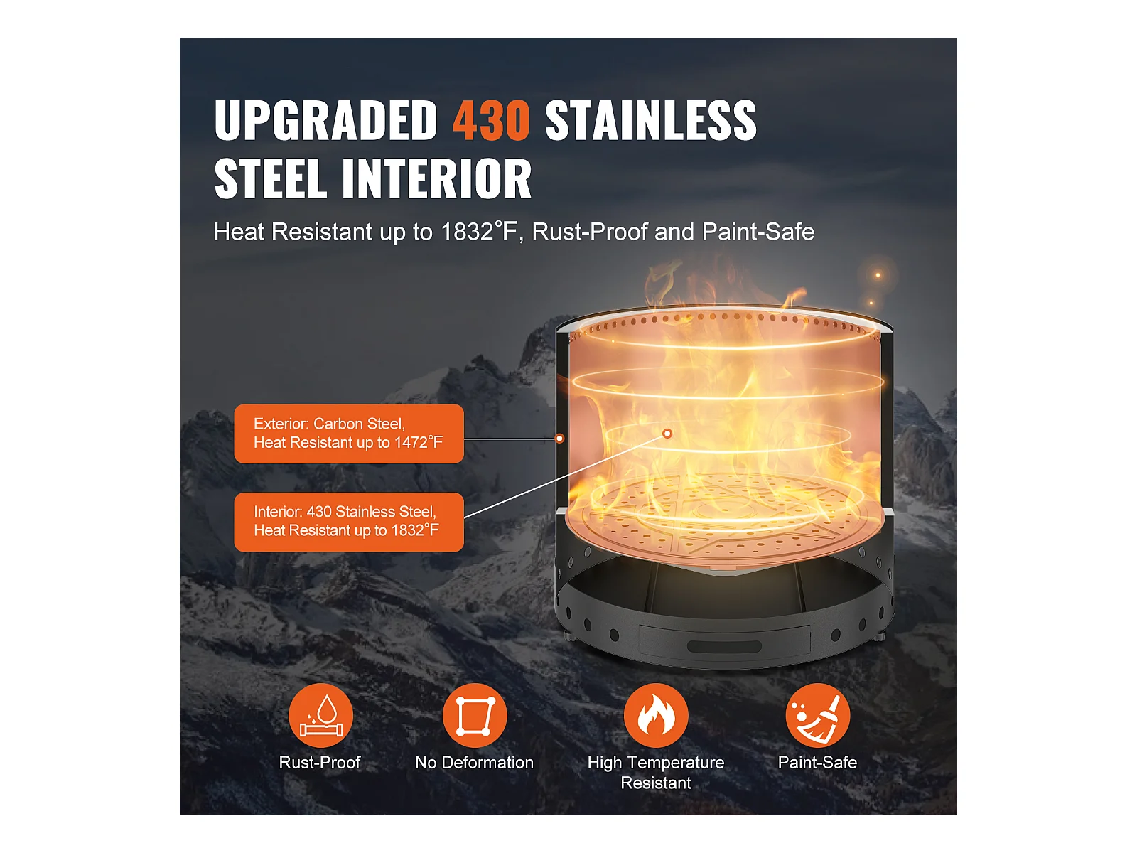 Poêle à Bois sans Fumée SucceBuy Bonfire, 710 mm de Diamètre, en Acier Inoxydable