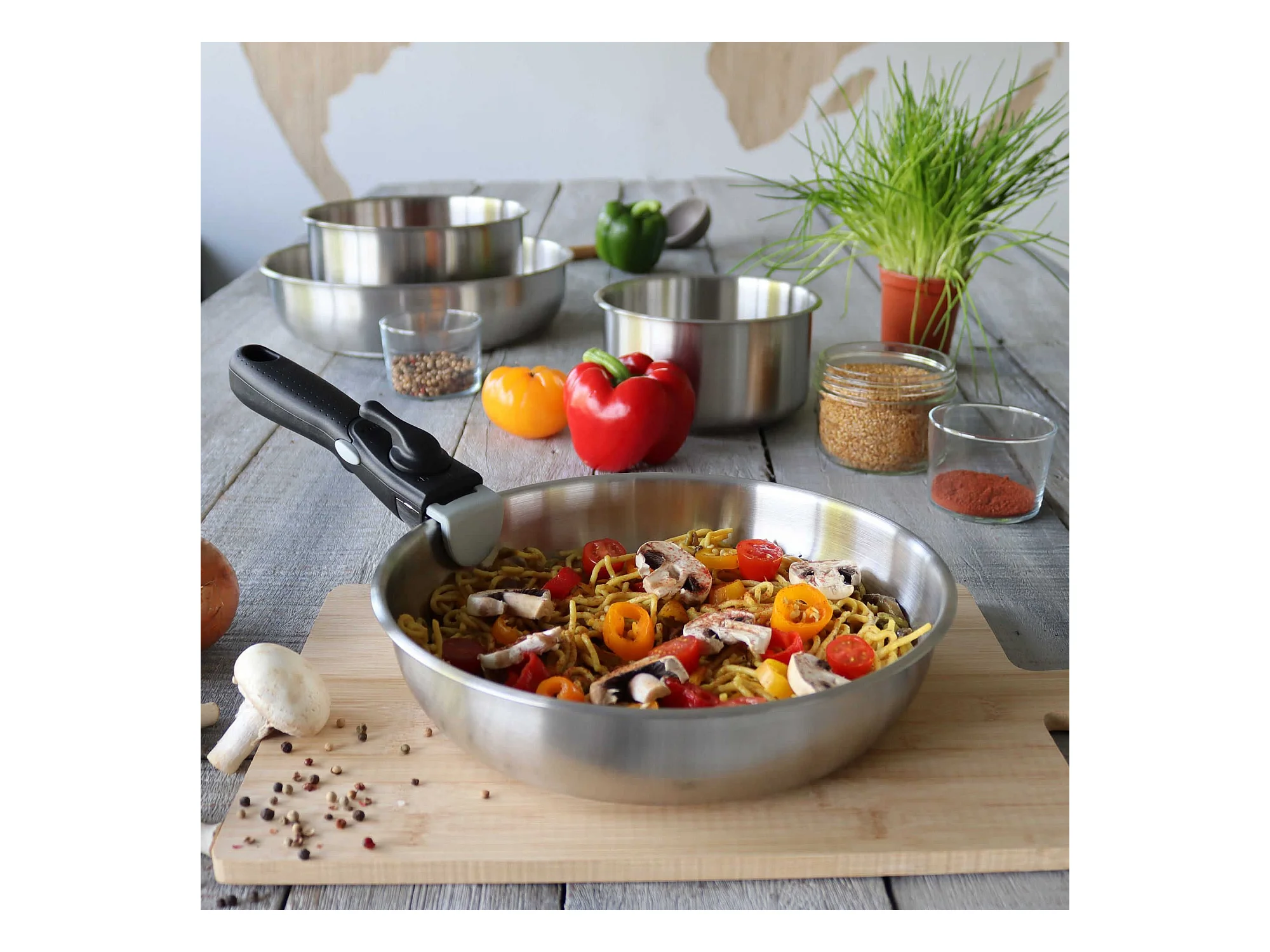 Poêle inox 24 cm avec manche amovible et système Click & Lock - Collection COMBI de LACOR