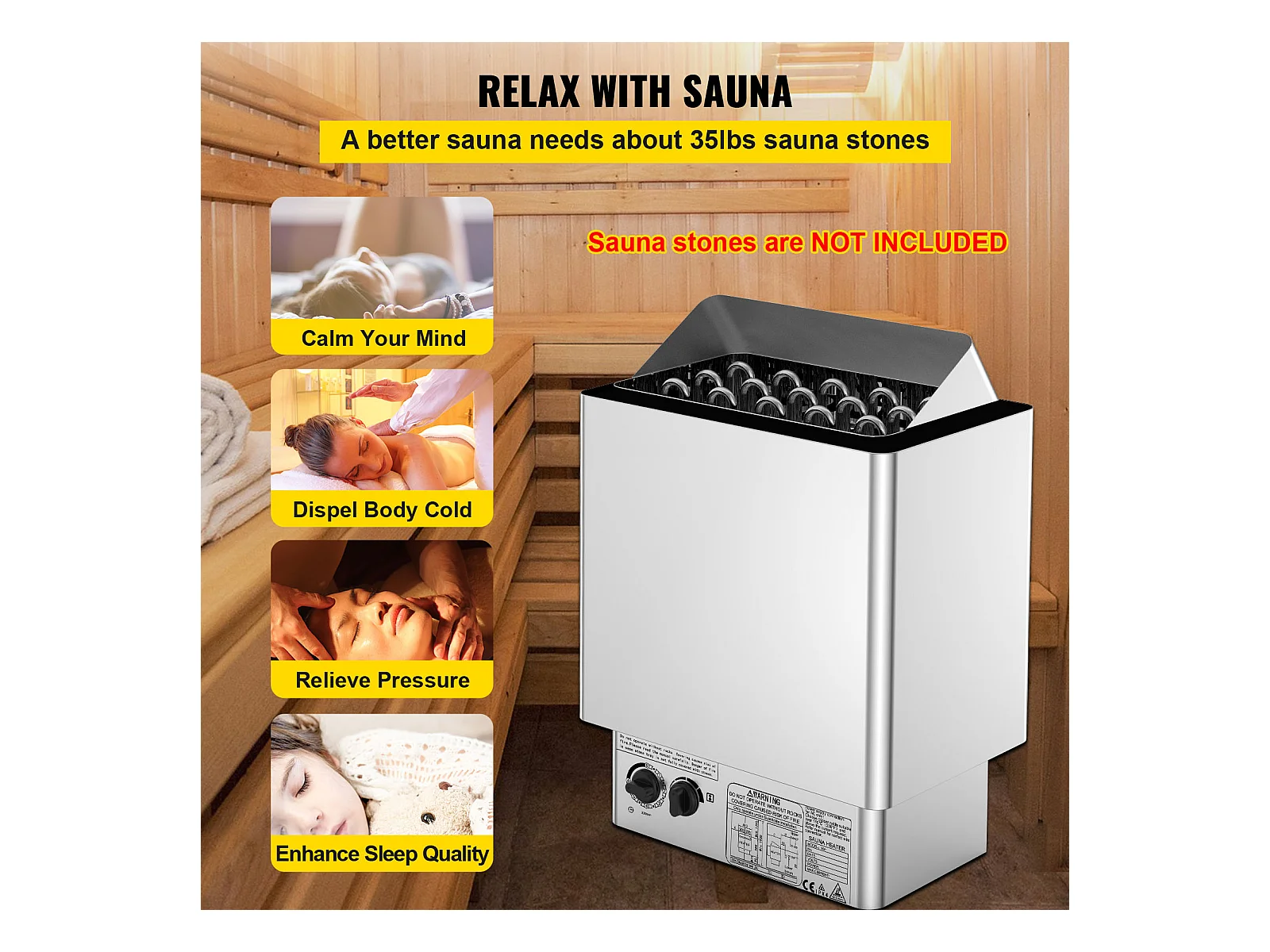 Poêle de Sauna SucceBuy Chauffe - Sauna Électrique 9KW, Contrôle Interne Humide et Sec pour Pièce de 9 à 13 m³