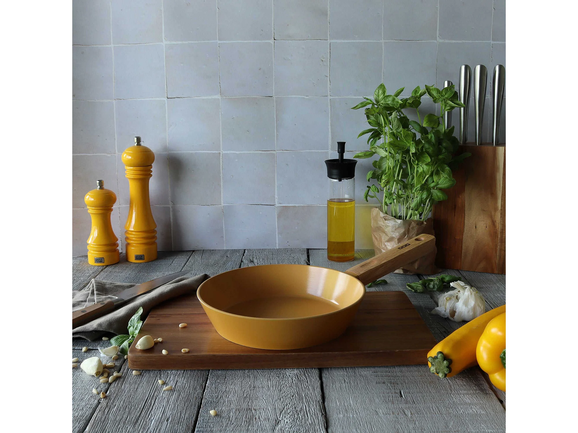 Ogo Living - Poele Ector 28cm En Alu Revetement Ceramique Jaune Avec Manche Bois
