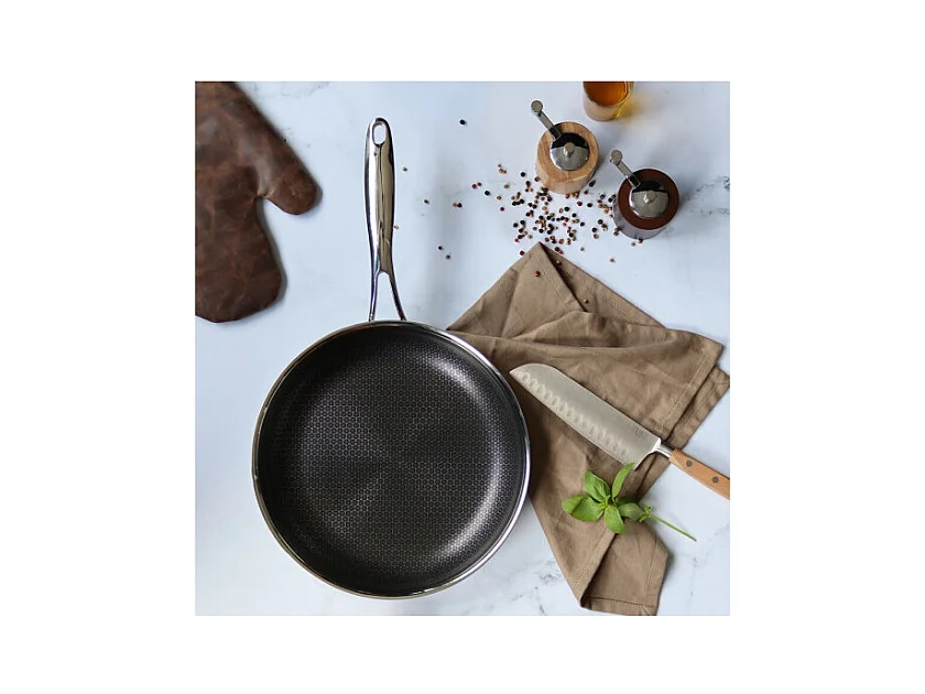Poele sauteuse Ogo POELE BLACK CUBE 28 CM EN ACIER INOXYDABLE FOND NID D ABEILLE TOUS FEUX DONT INDUCTION