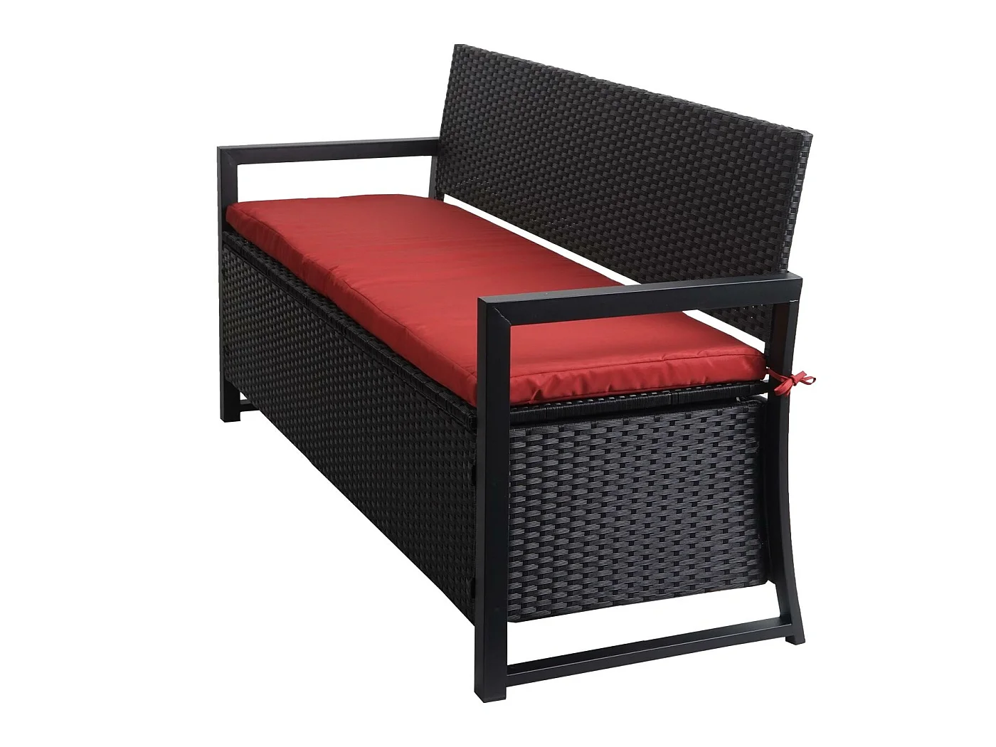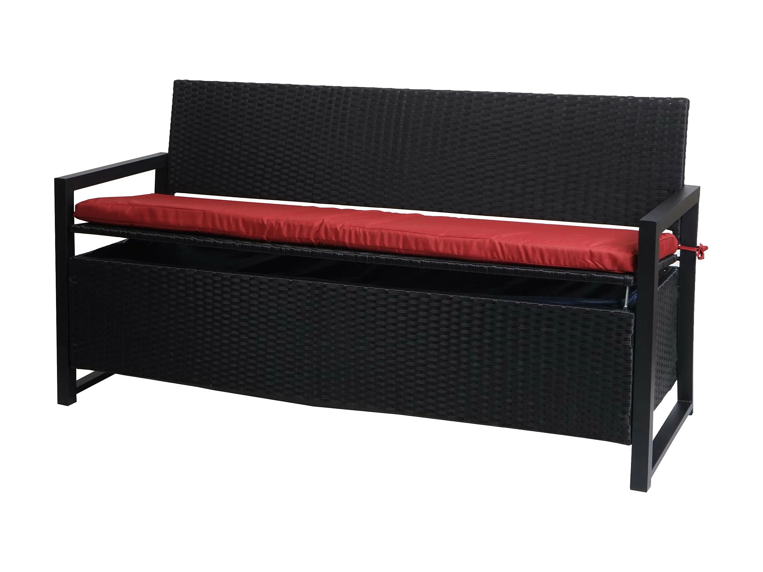 Poly-Rattan Banc 3 places MCW-F39, anthracite, coussin bordeaux