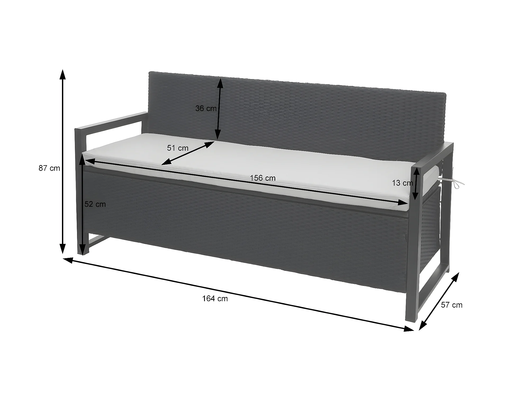 Banc de jardin en poly rotin Hamar, anthracite, coussin crème