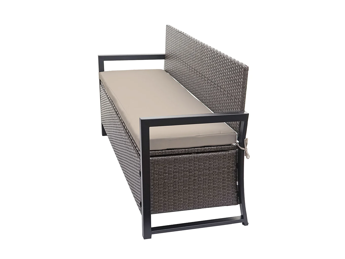 Banc de jardin en poly rotin Hamar, anthracite, coussin crème