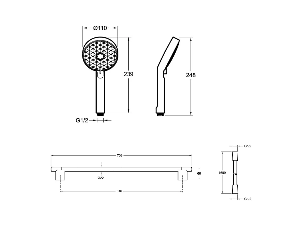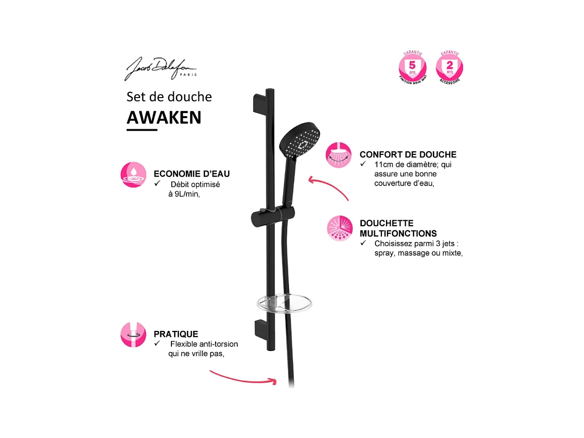 Pommeau de douche + barre + flexible JACOB DELAFON Awaken noir mat