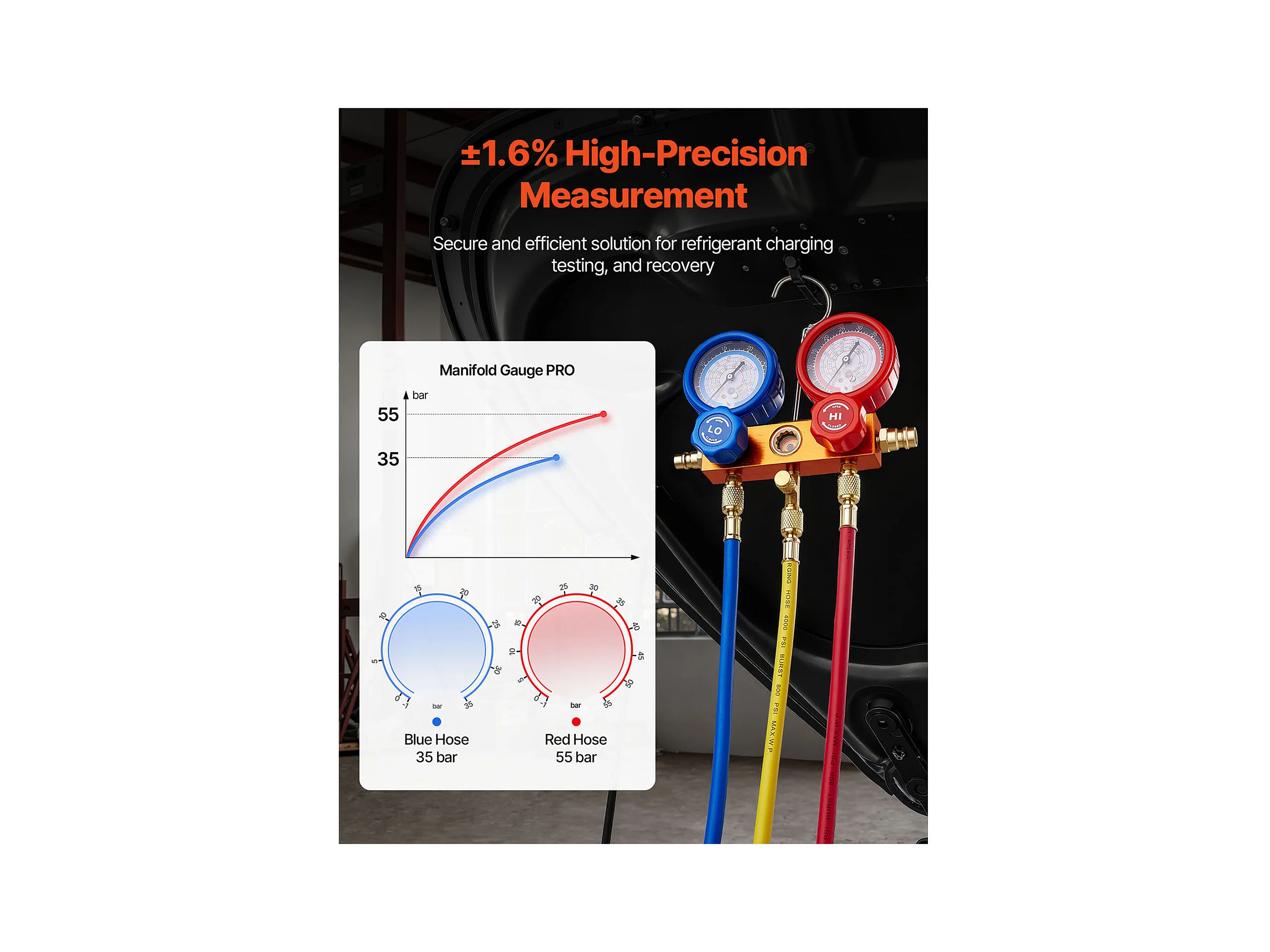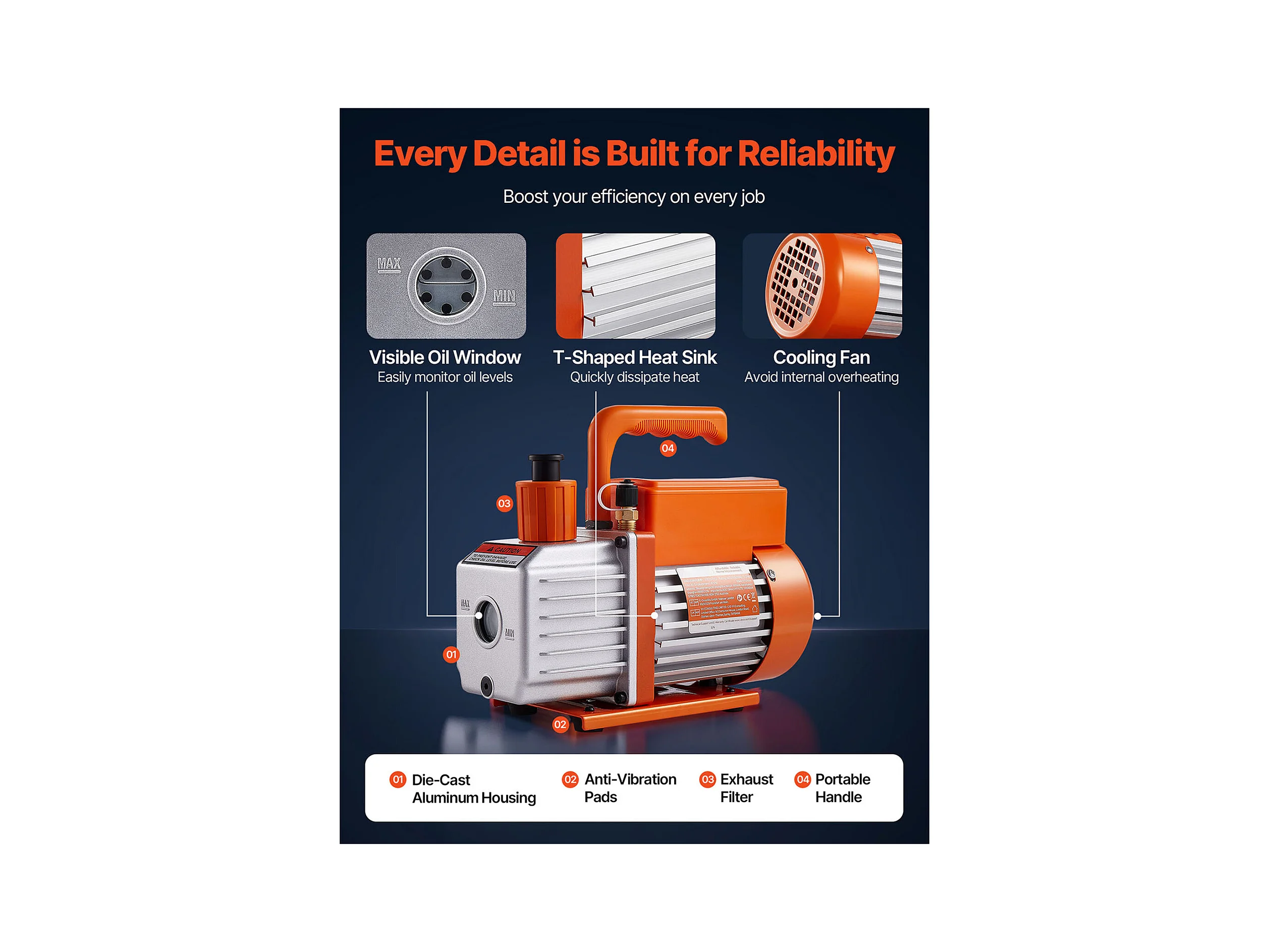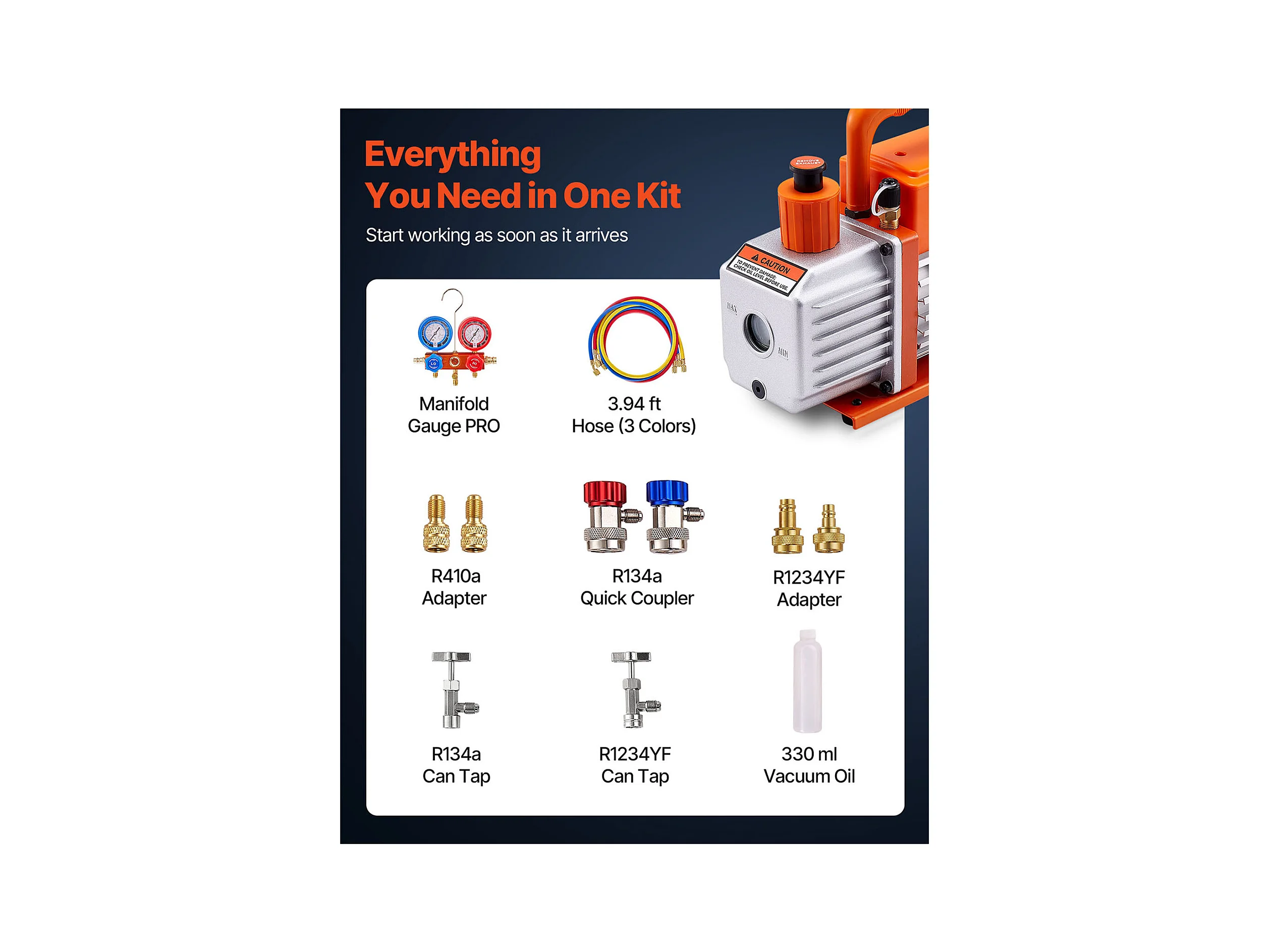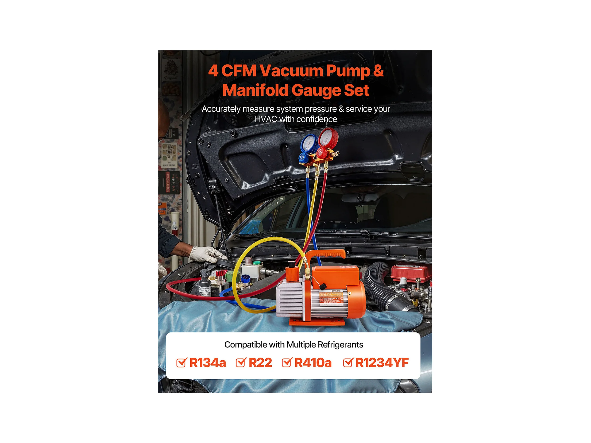 Pompe à Vide SucceBuy pour Climatisation 115 L/min, à Palettes Rotatives, Mono-Étage, avec Manomètre de Collecteur de Réfrigérant, Détecteur de Fuite