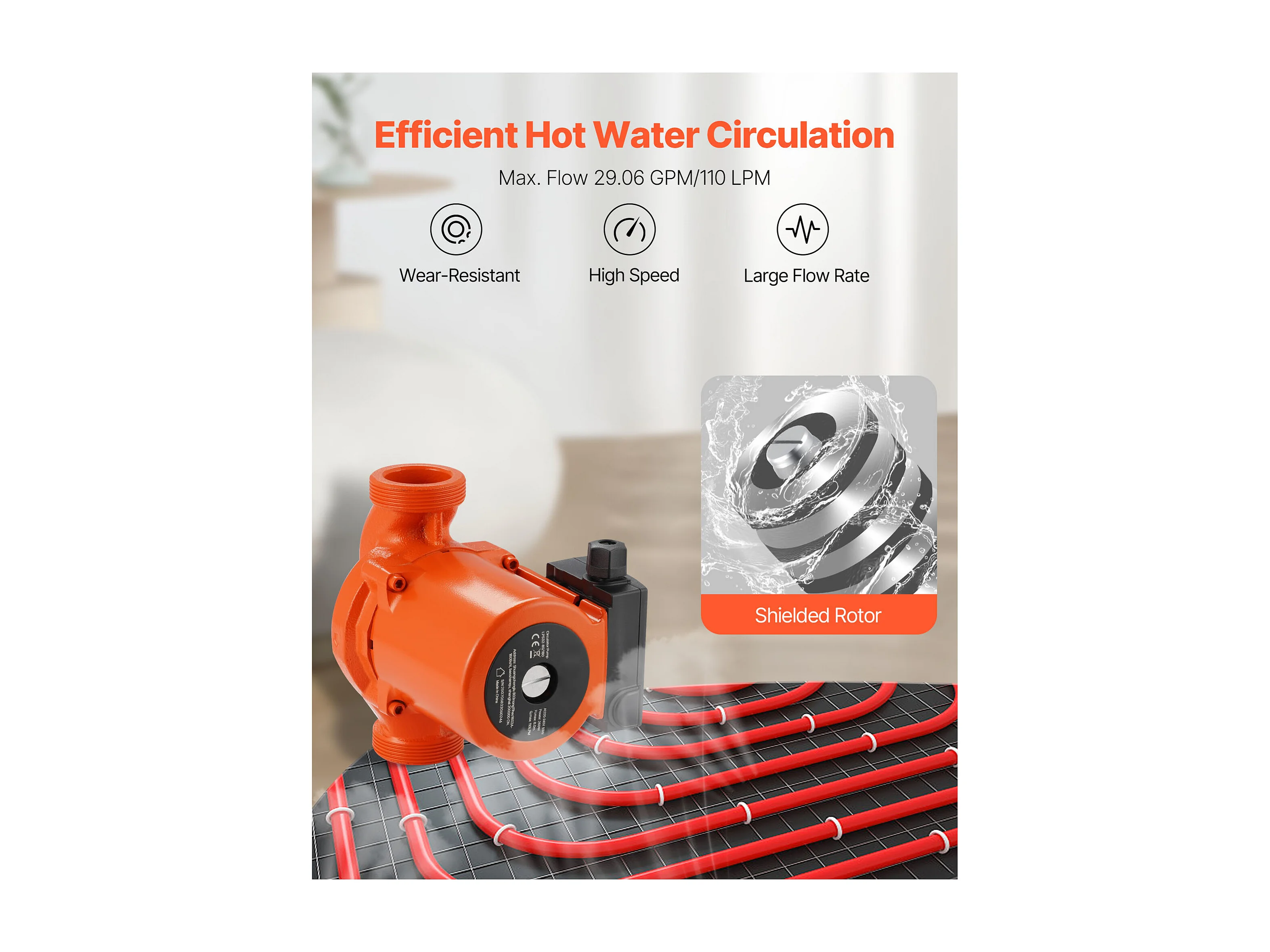 Pompe de Circulation SucceBuy d'Eau Chaude, Pompe de Chauffage à Haut Rendement 110 L/min, Raccord Fileté, Réglage à 3 Vitesses, Fonctionnement Silencieux