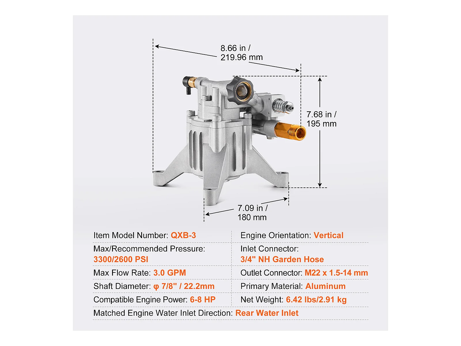 Pompe de Nettoyeur Haute Pression SucceBuy, 22,2 mm, 3300 PSI, 3 GPM, avec 5 Buses, Compatible avec RYOBI, Honda, Briggs, Stratton