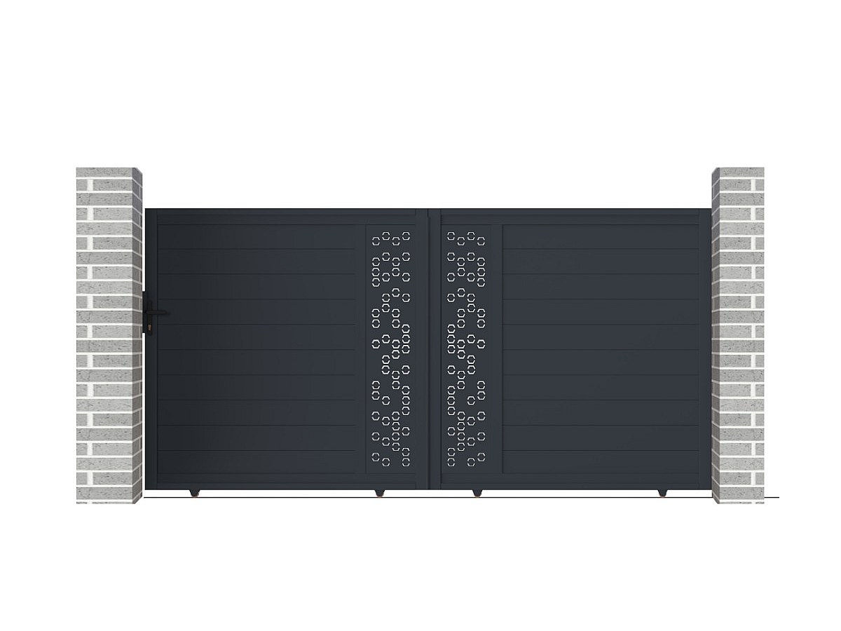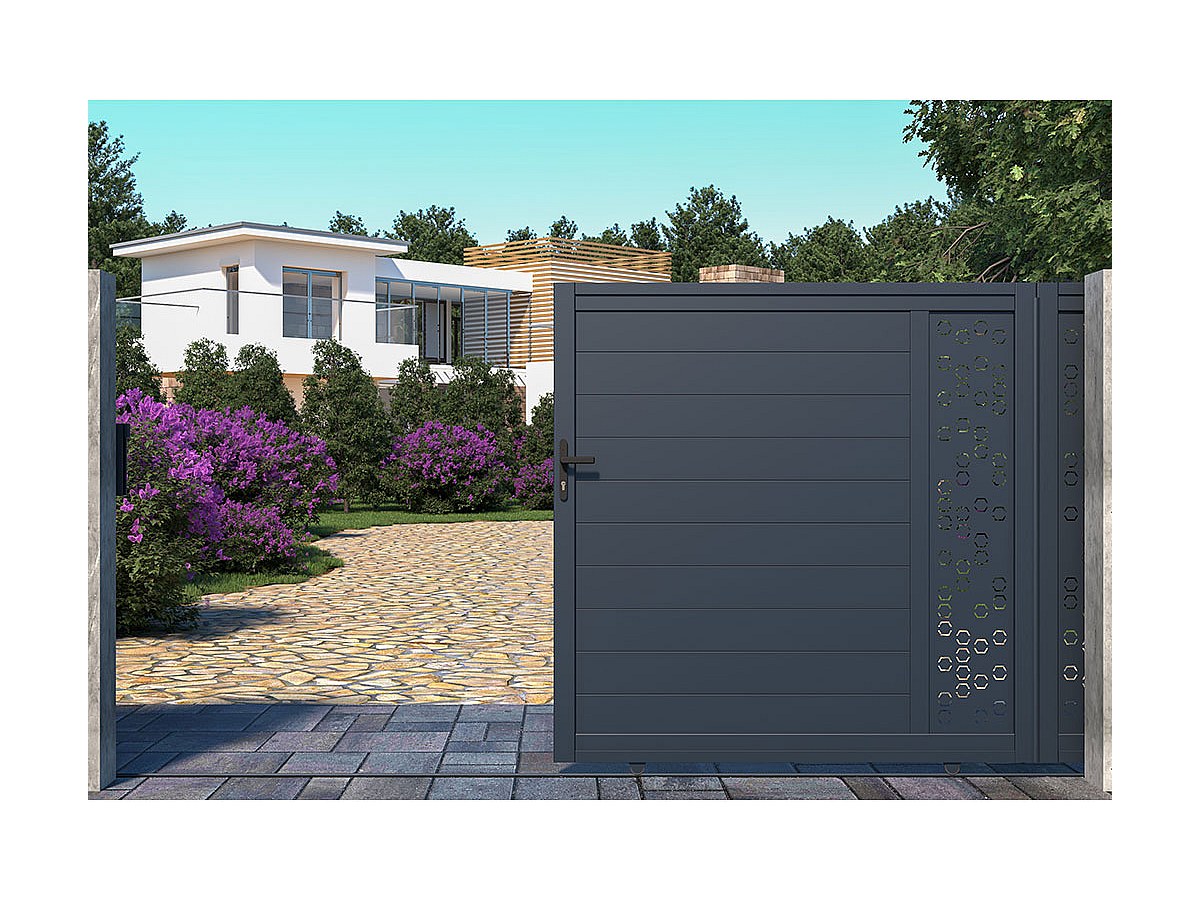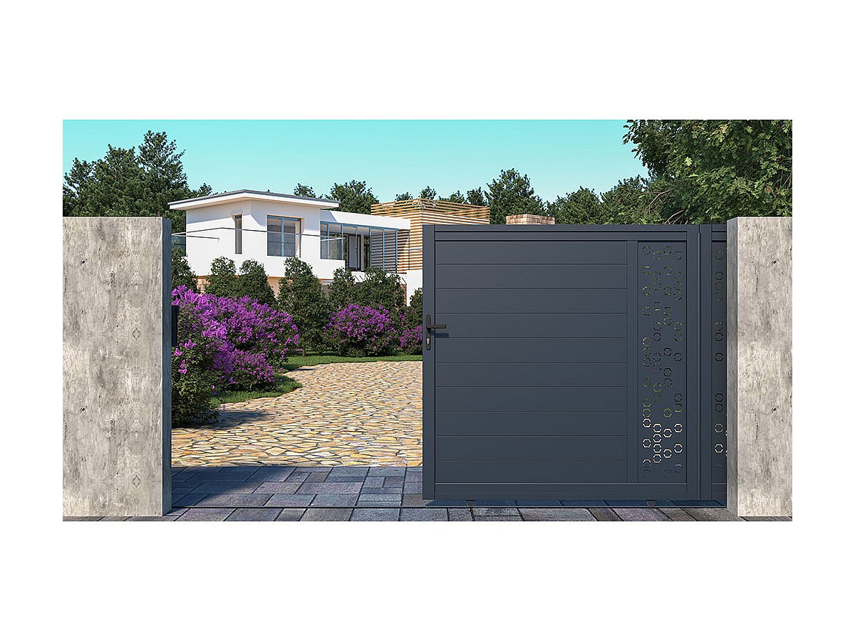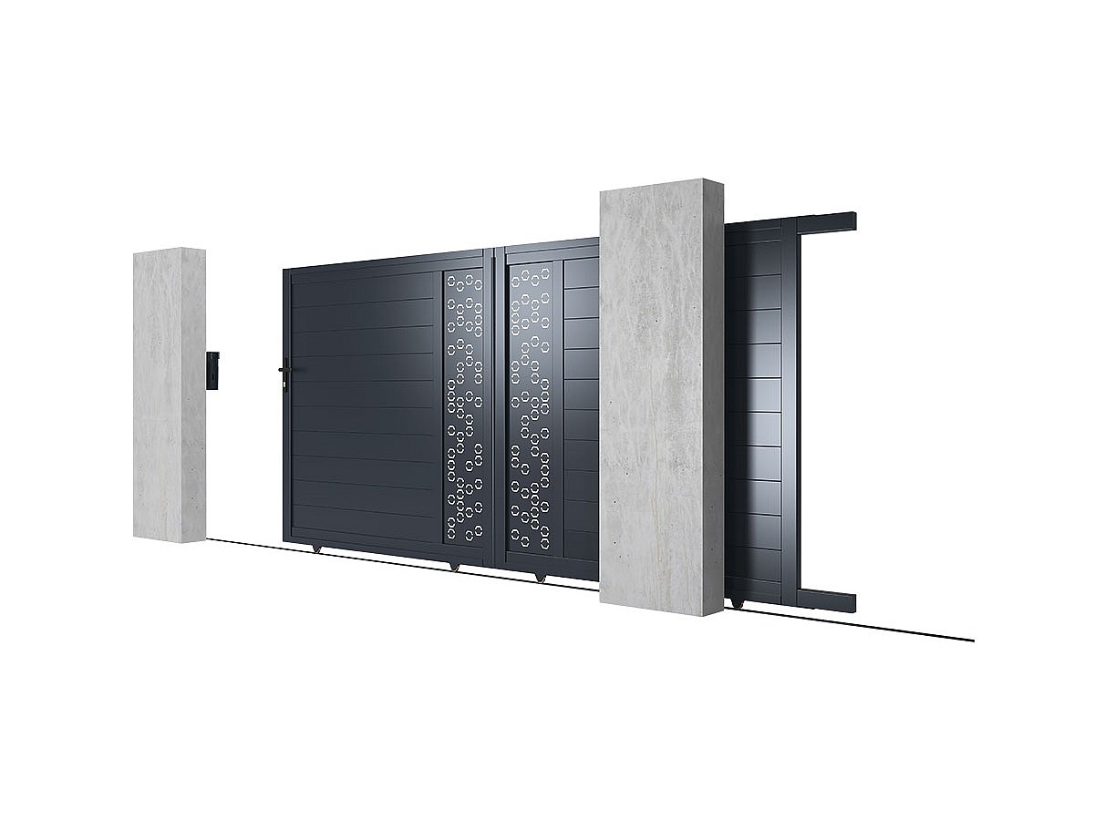 Portail coulissant en aluminium à motifs NOIRAM - L350 x H173 cm