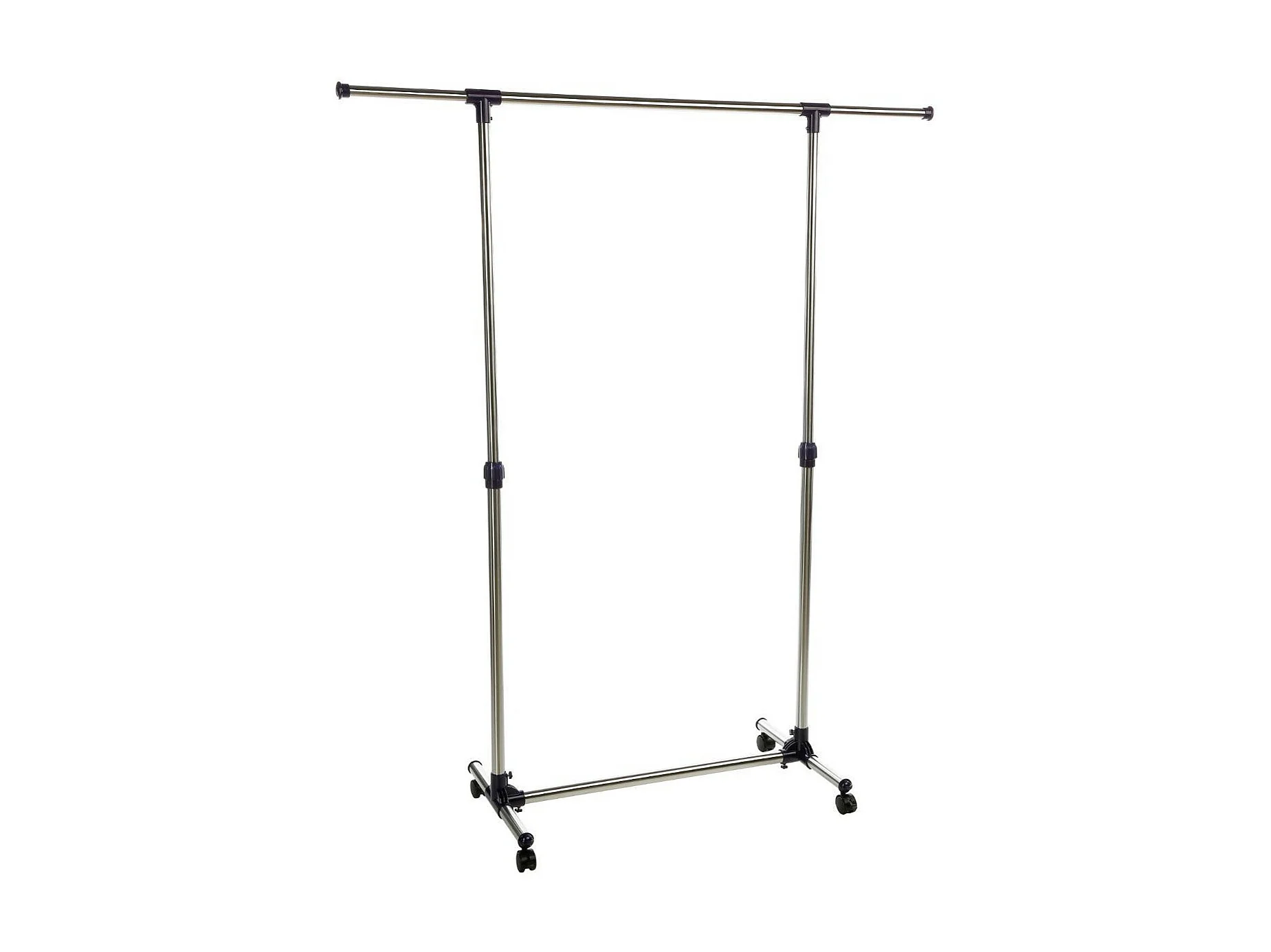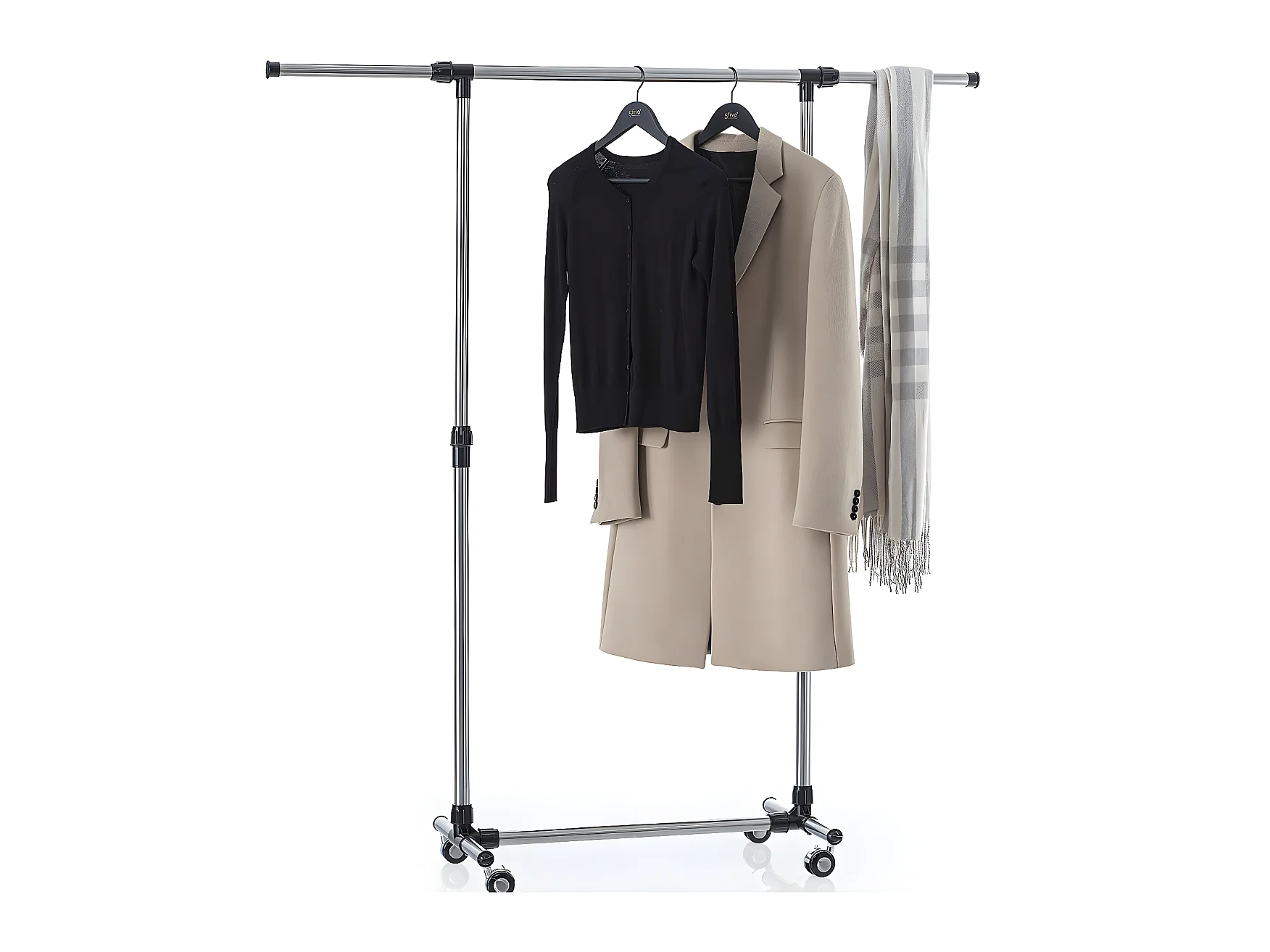 Porte-manteau à roulettes en acier inoxydable, réglable en hauteur et extensible