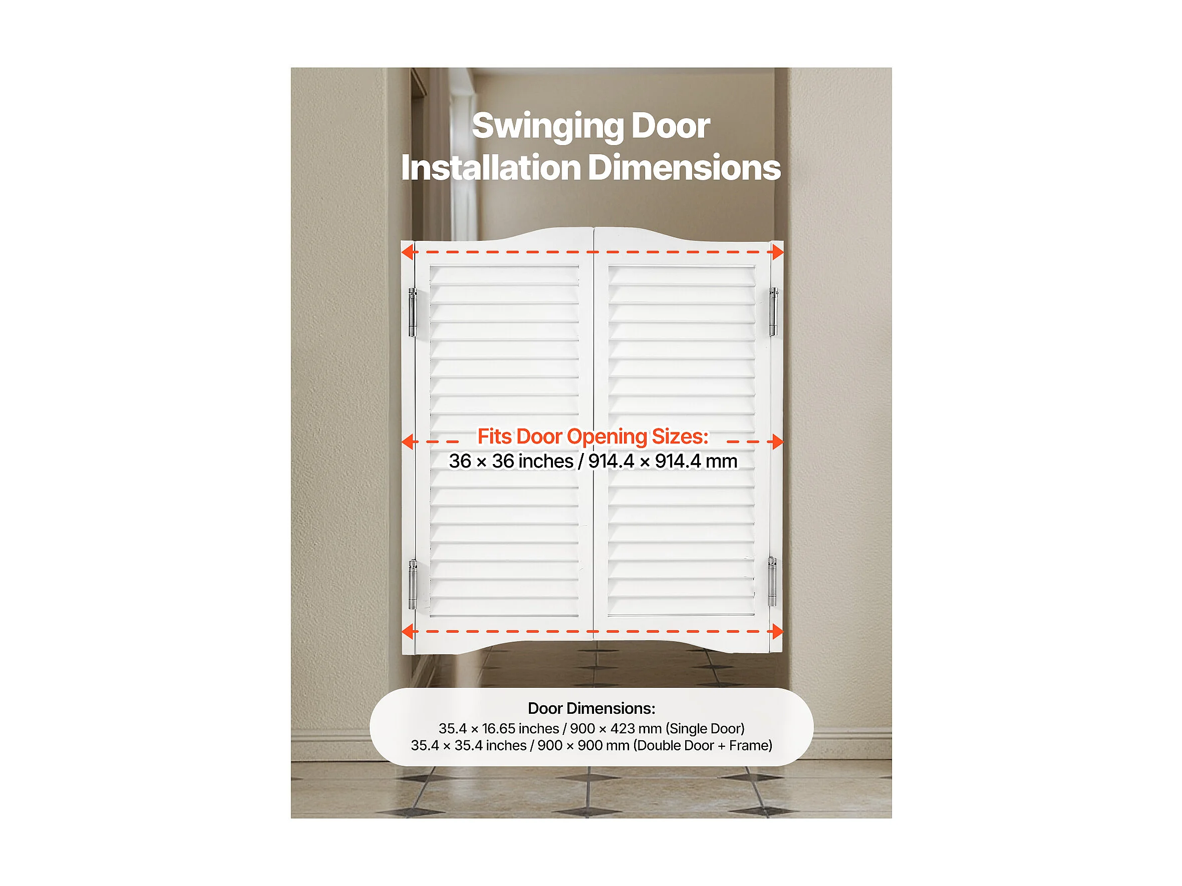 Porte Battante Double SucceBuy, 90x2,8x90 cm, Porte Saloon en Bois de Pin avec Charnières, Quincaillerie, Facile à Installer, Blanc