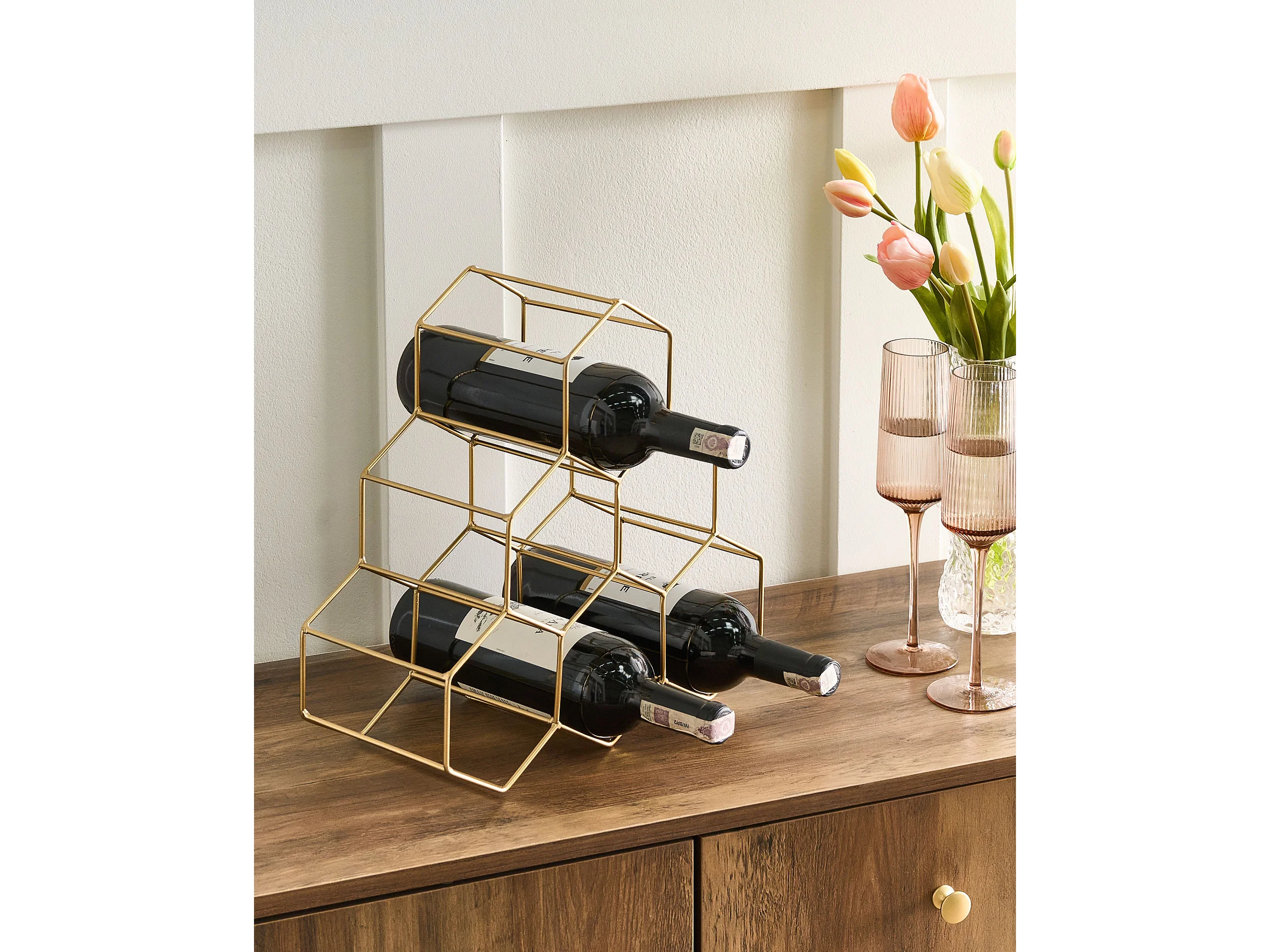 Range Bouteilles en métal doré et bois capacité 6 Bouteilles